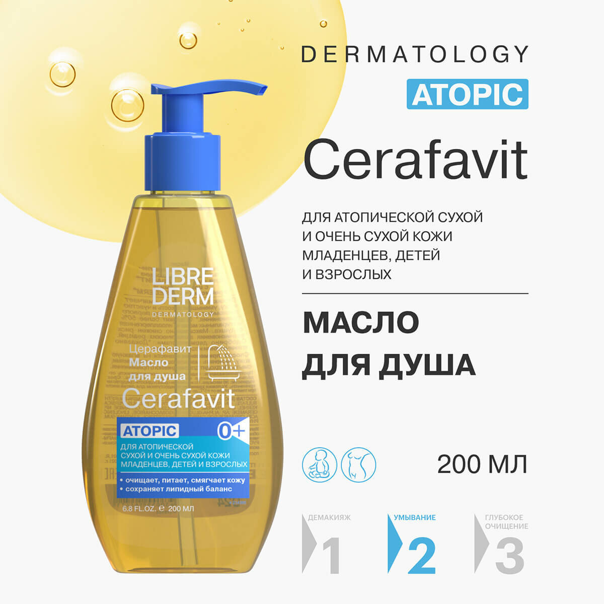CERAFAVIT масло липидовосстанавливающее для душа с церамидами и пребиотиком 200 мл, LIBREDERM