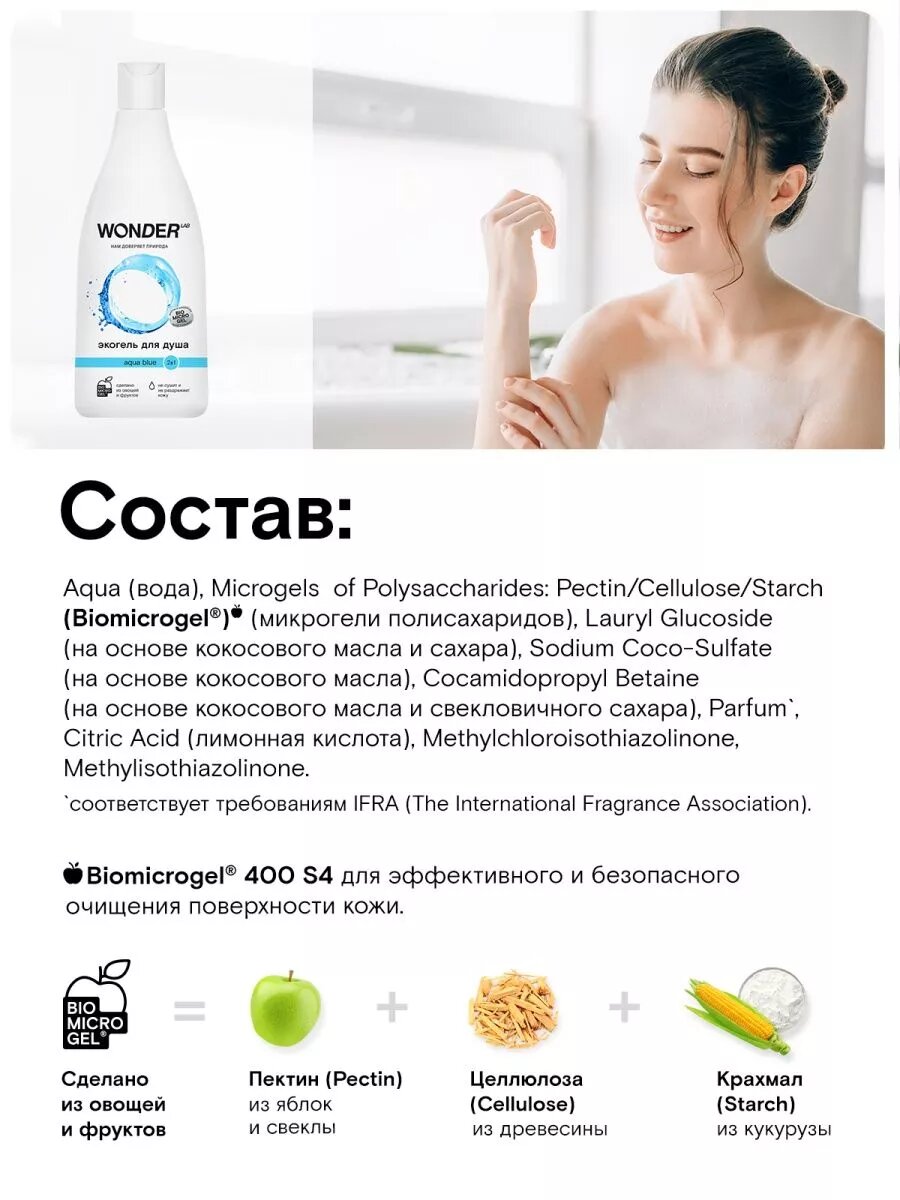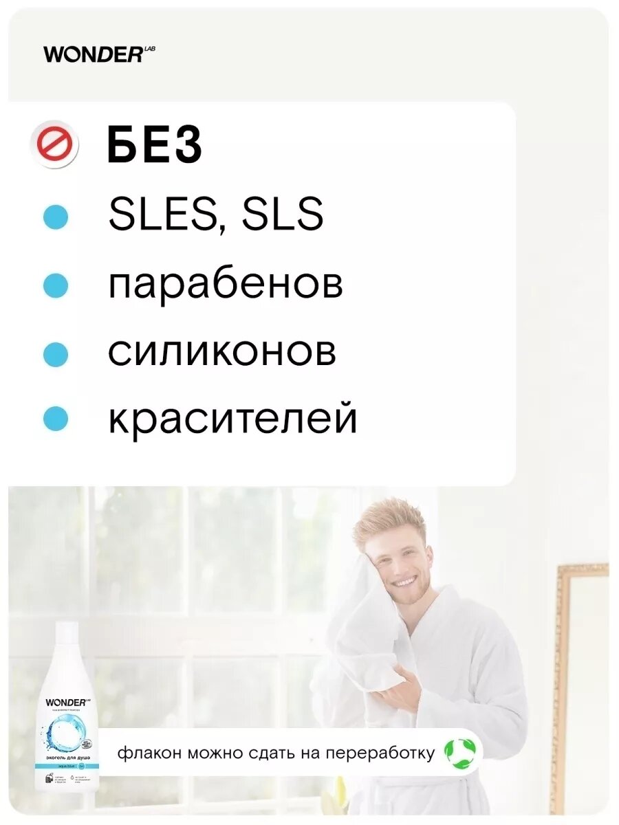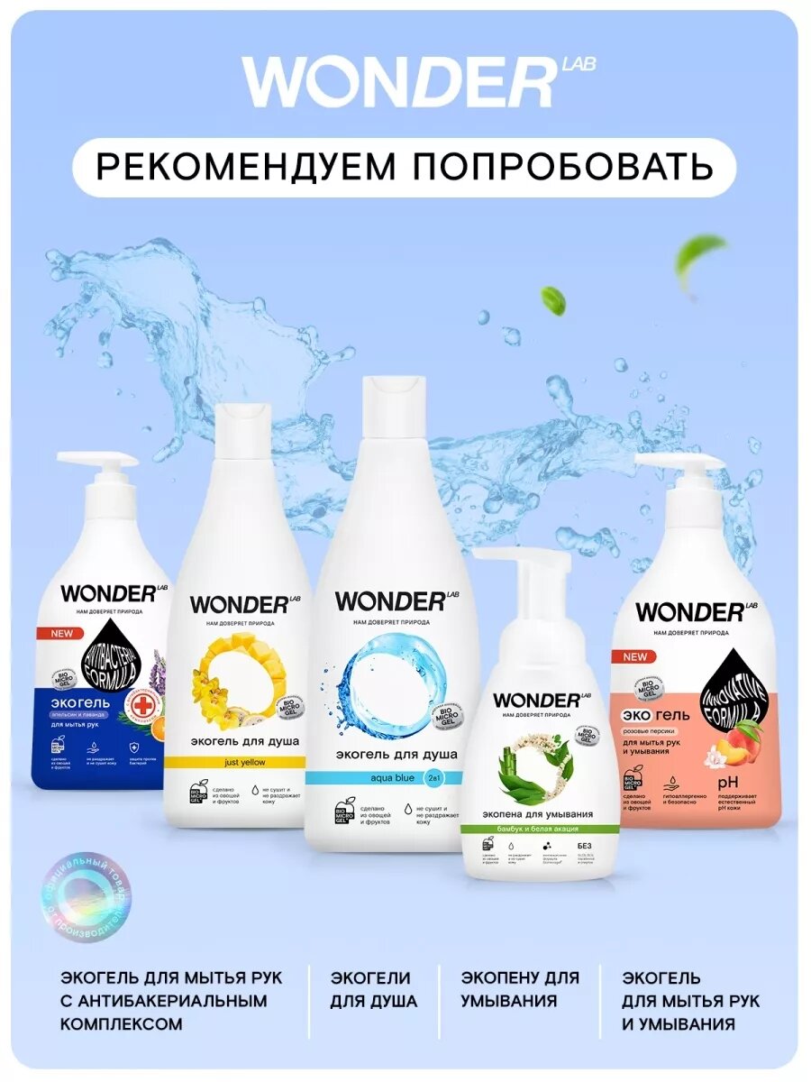 Гель для душа увлажняющий WONDER LAB экологичное средство для тела без сульфатов 550 мл