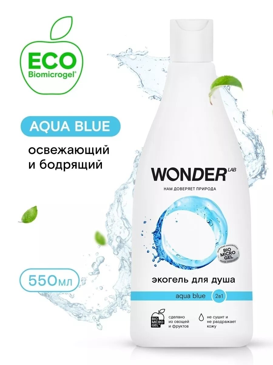 СохранитьГель для душа и шампунь Wonder Lab Aqua blue 2в1 Увлажняющий, с ароматом свежести, 550 мл интересное: