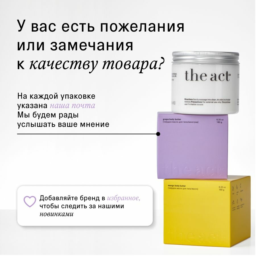 The Act labs Увлажняющий крем для тела, баттер для тела, твердое масло виноград, органическая косметика, 180 г