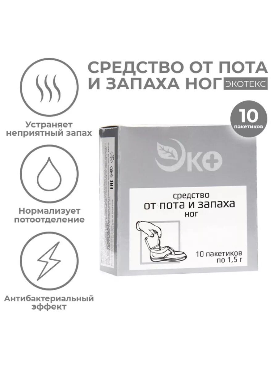 Средство от пота и запаха ног Экотекс, 10 пакетиков по 1,5 г интересное: