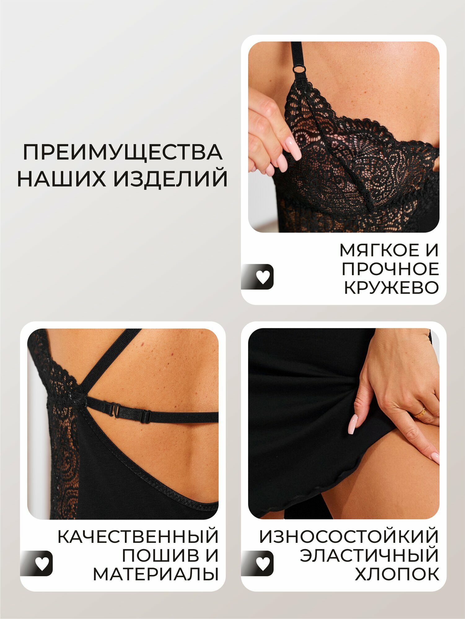 СохранитьНочная сорочка кружевная хлопокMon Plaisir, арт.196941940, черный, размер 44 интересное: