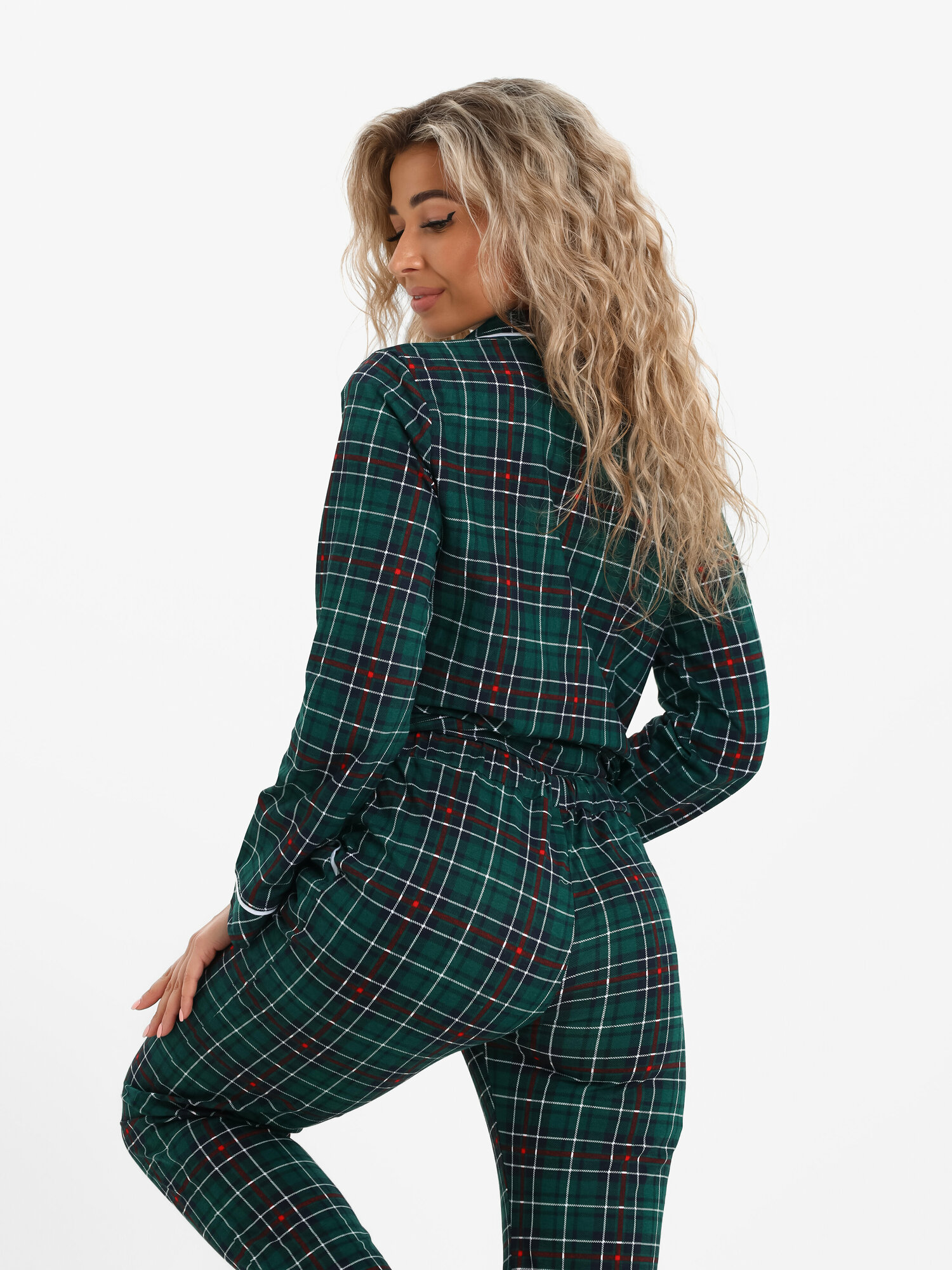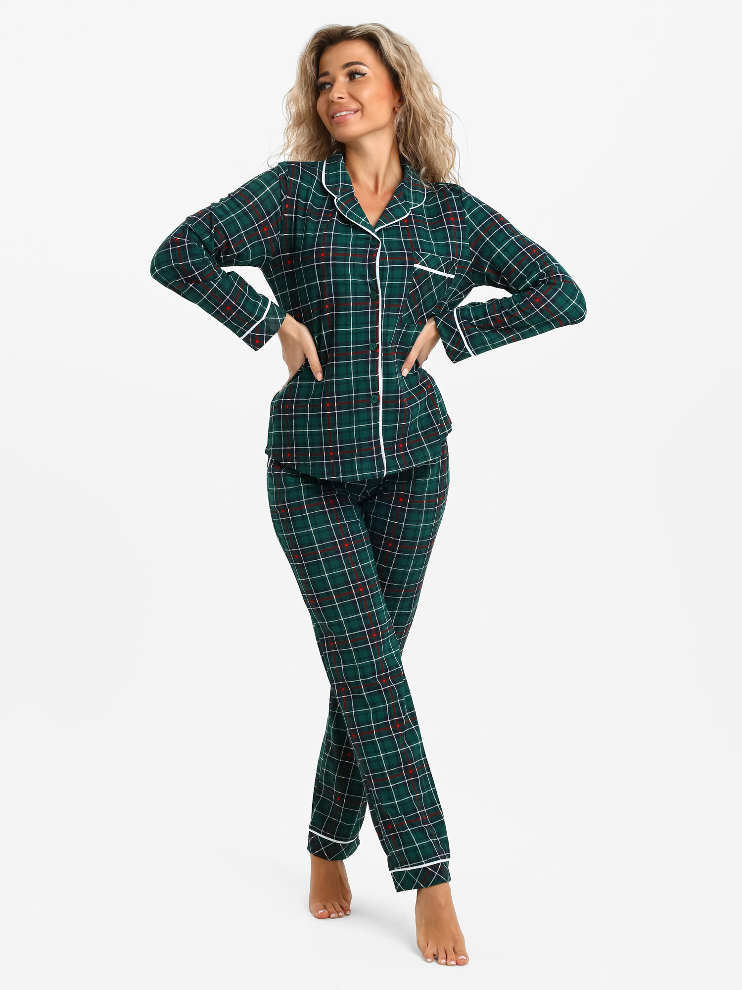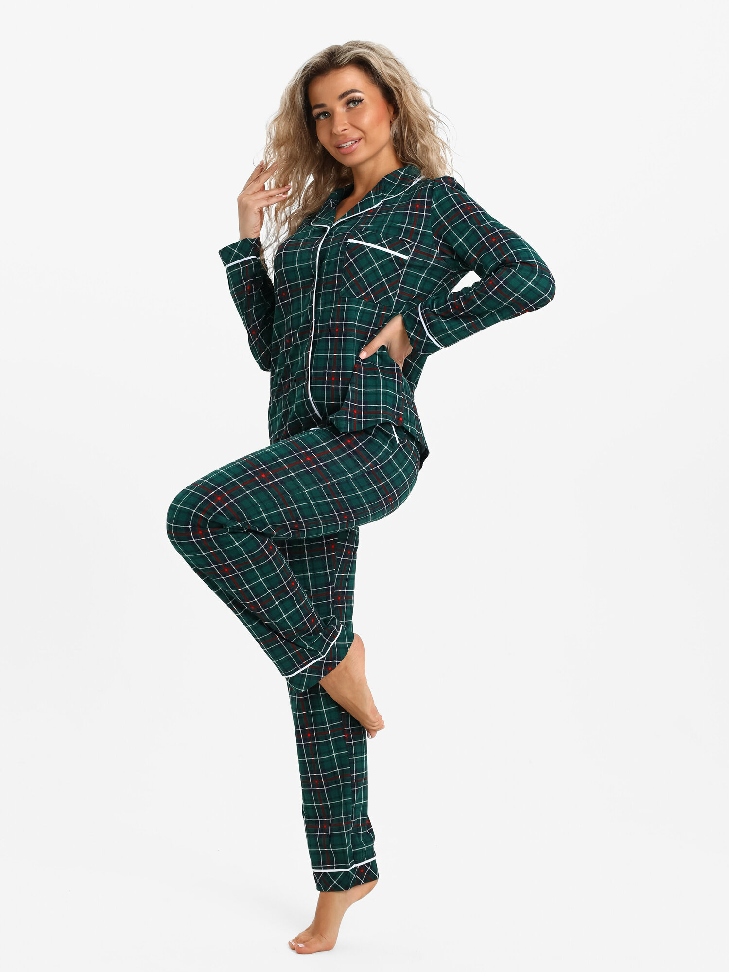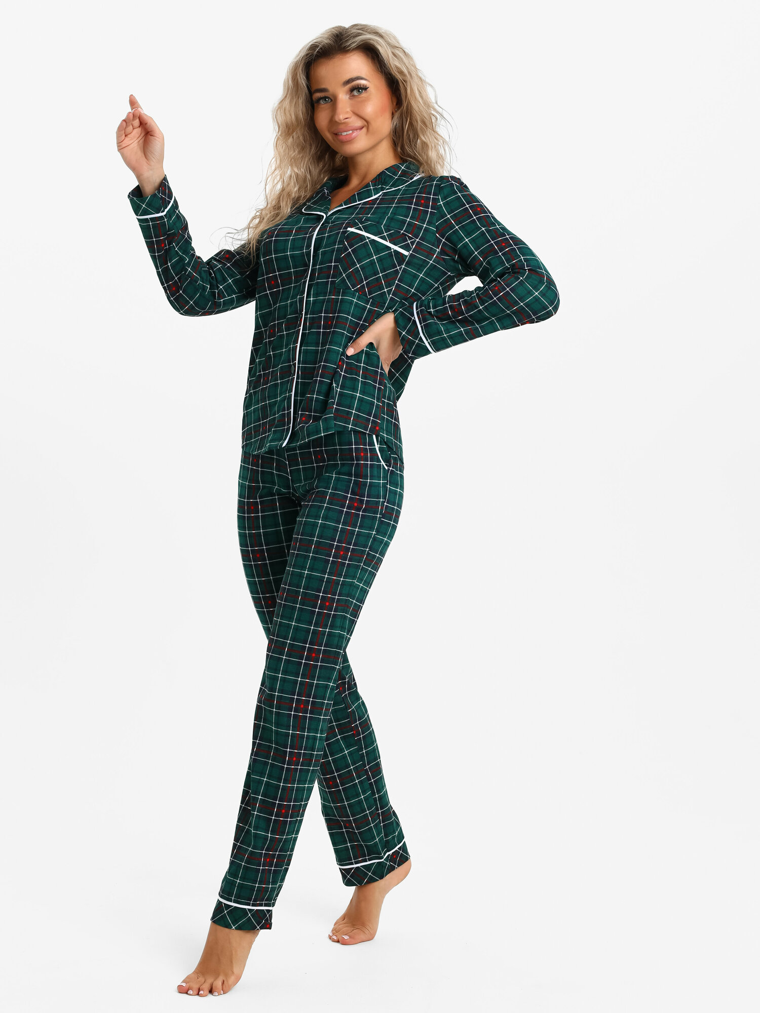 Купить Пижама MODALINA 100% хлопок костюм домашний в клетку/новогодняя пижама зел48