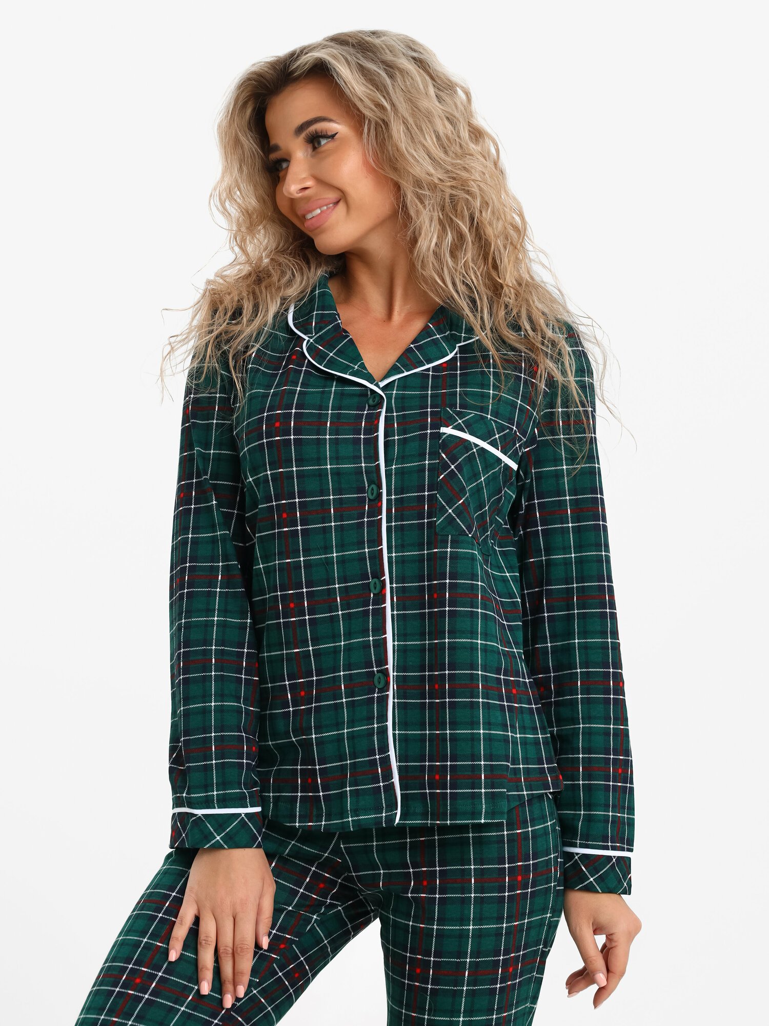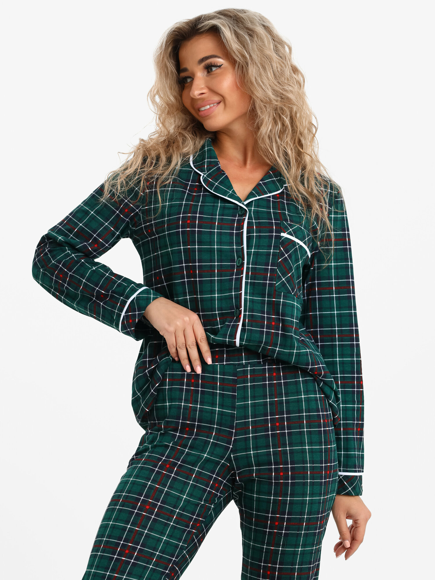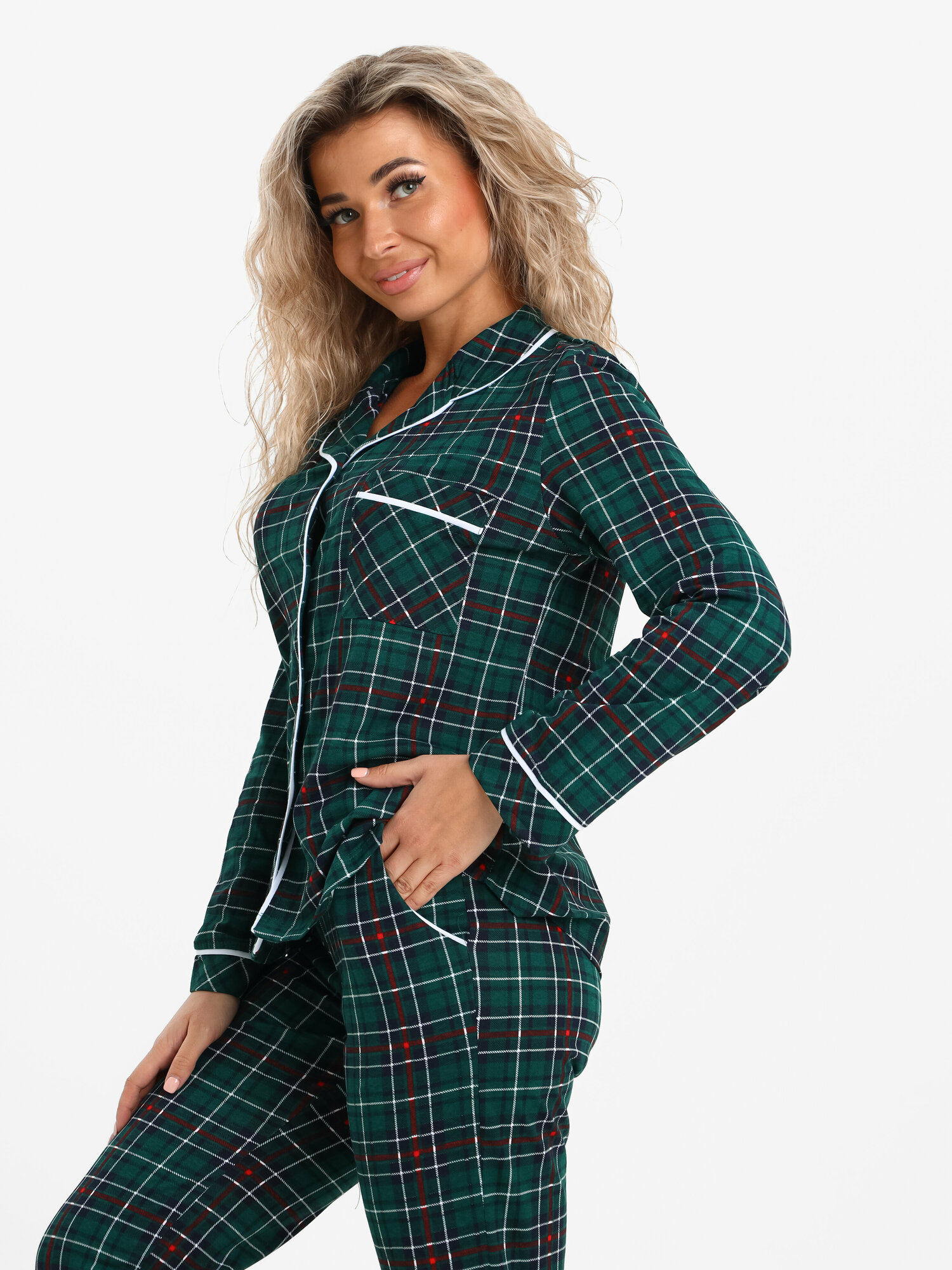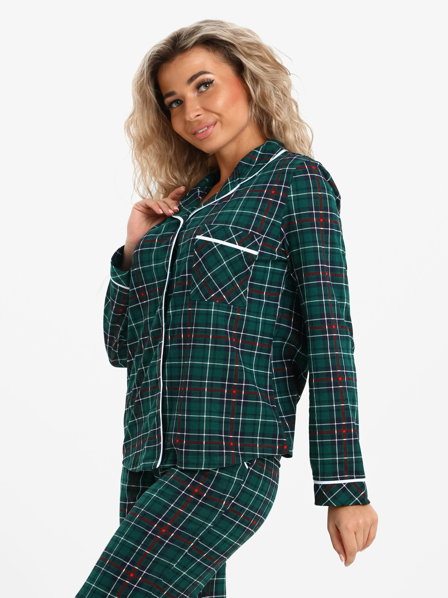 Купить Пижама MODALINA 100% хлопок костюм домашний в клетку/новогодняя пижама зел48