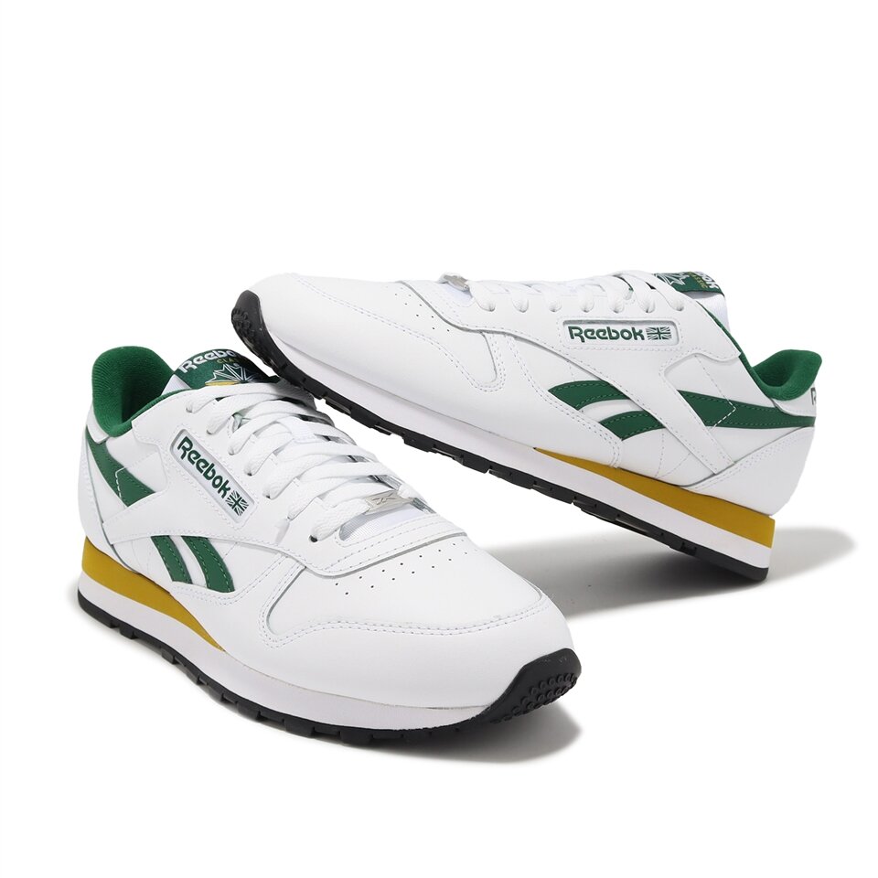 Кроссовки Reebok Classic Leather, размер 7 US, белый/зеленый/золотой