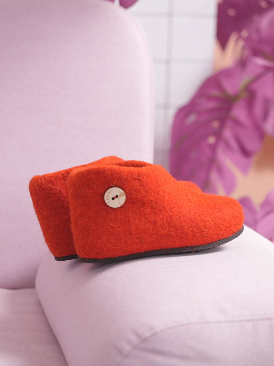 СохранитьТапочки SNEGI войлочные ручной работы для дома и дачи WILD Красный/Коричневая 29 р. интересное: