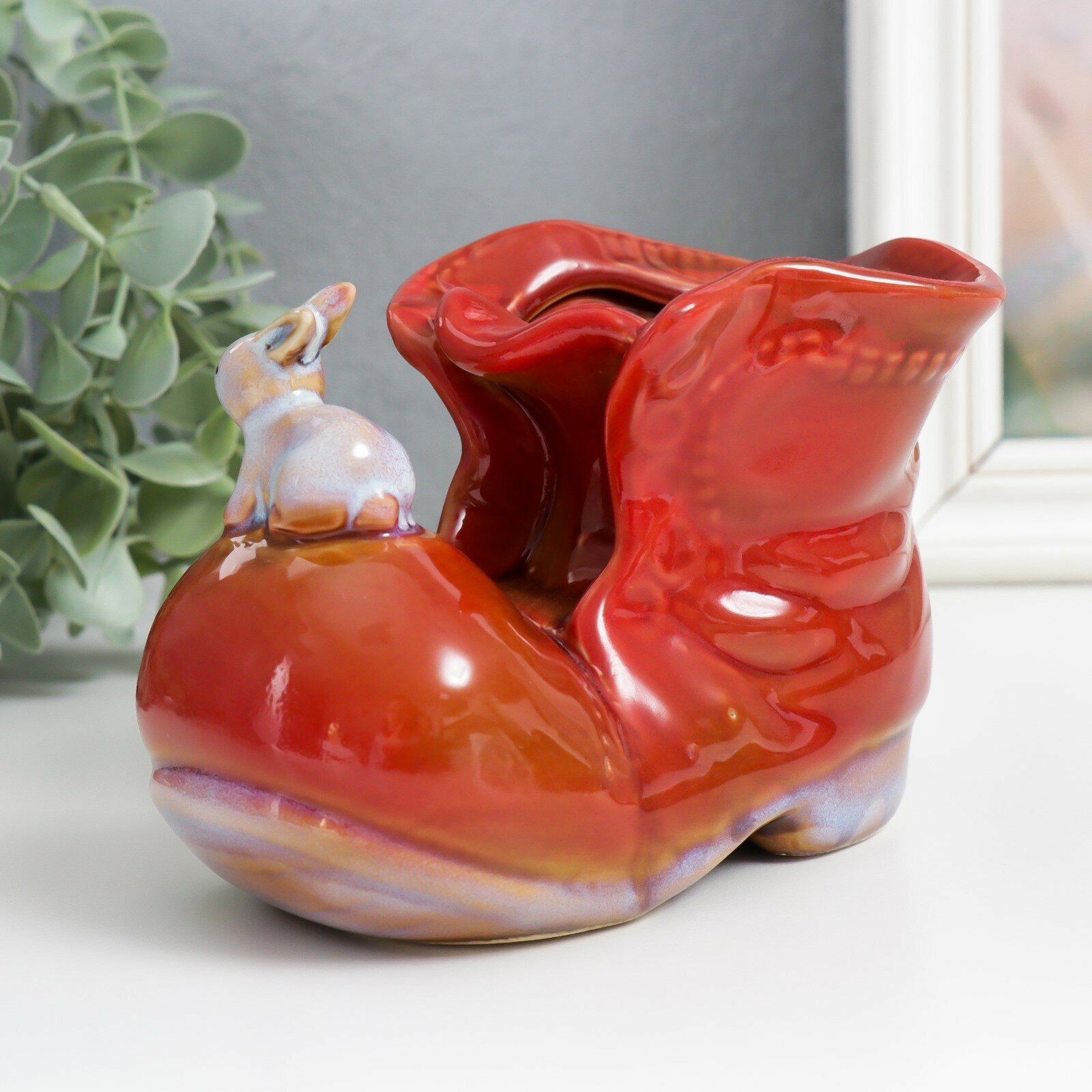 Купить Сувенир керамика "Ботинок с зайчиком" красный 7х13.5х9.5 см