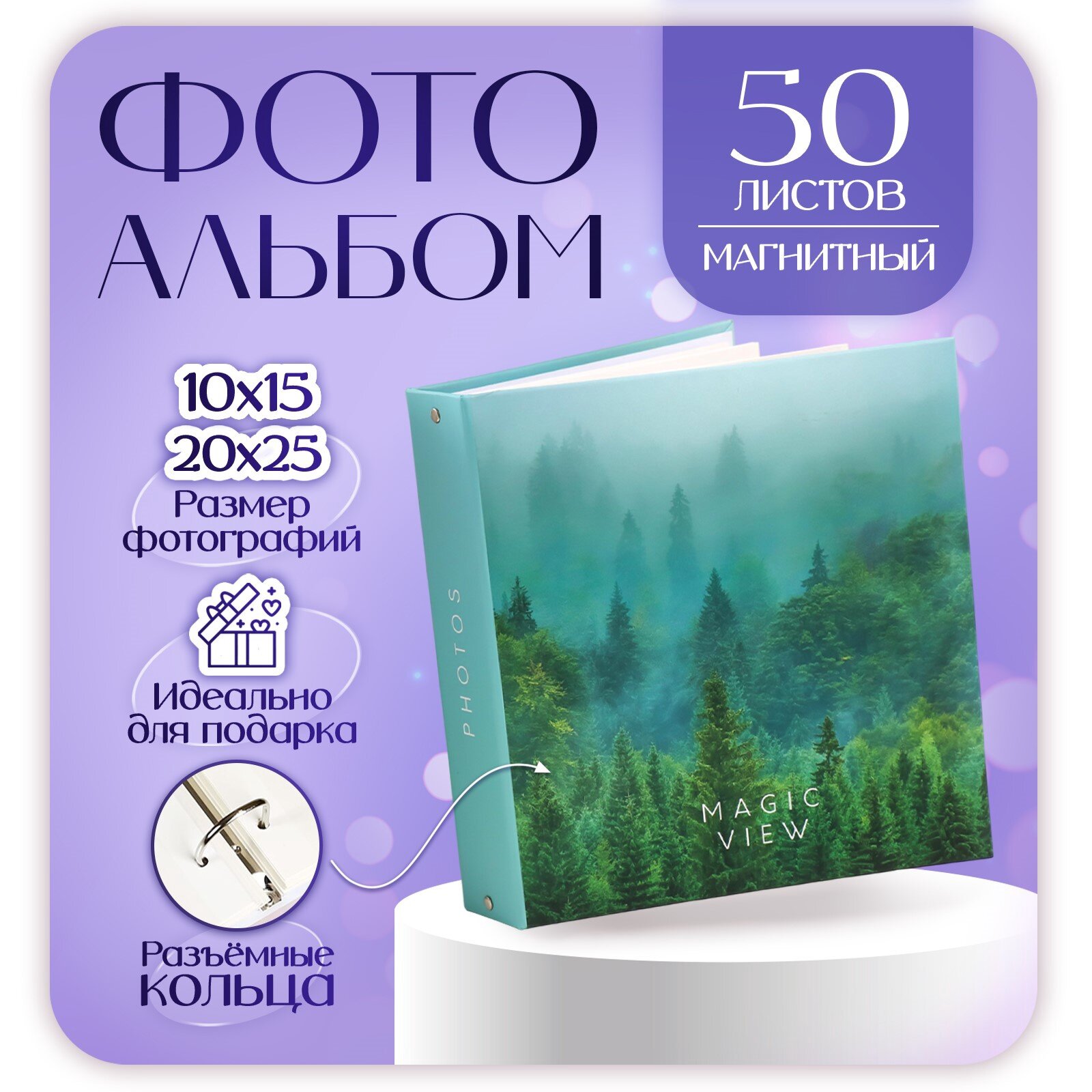 Купить Фотоальбом на 50 магнитных листов 23х28 см, на кольцах"fog" 10227227 .