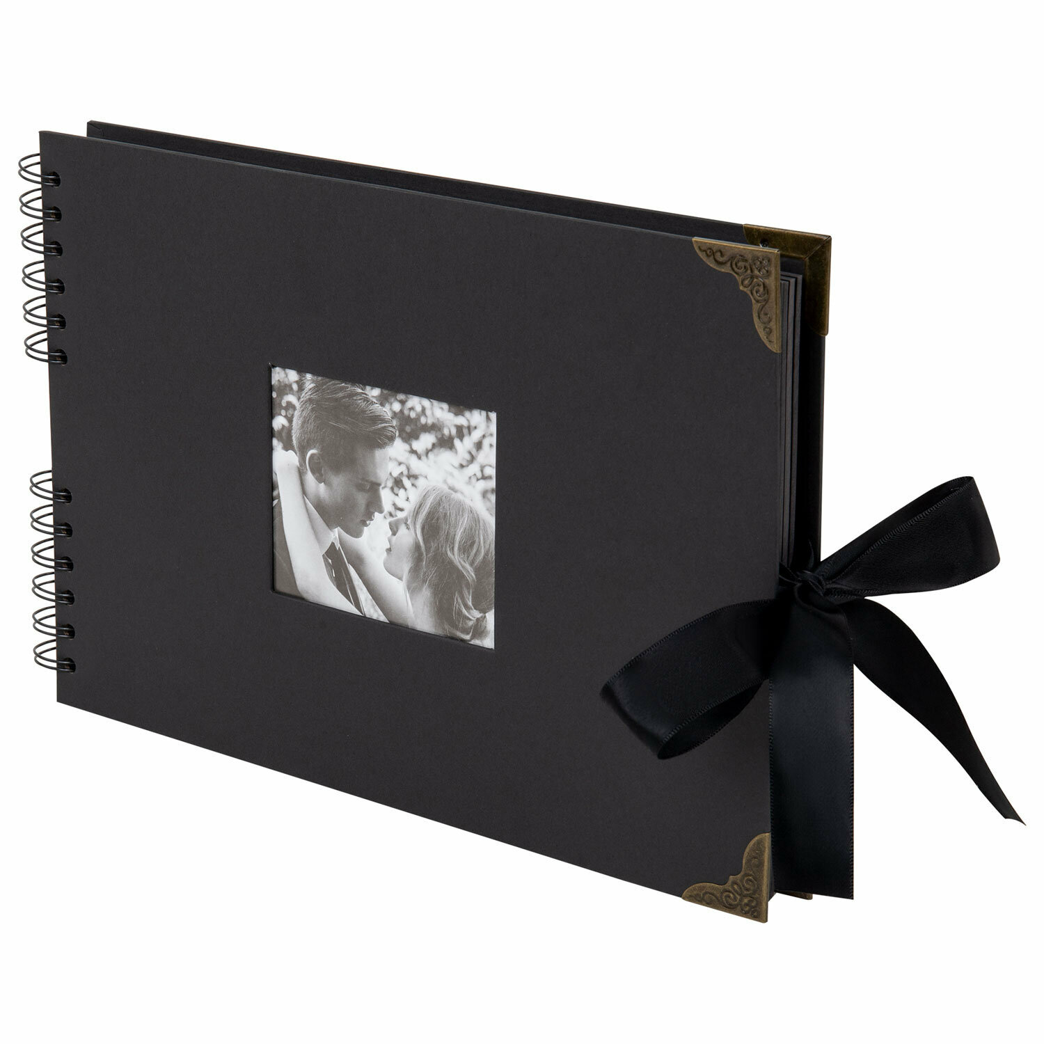 Фотоальбом, альбом для фото 10x15 семейный детский большой, для новорожденных, подарочный набор 30х32 см 48 черных листов, Brauberg Black Line, 880650