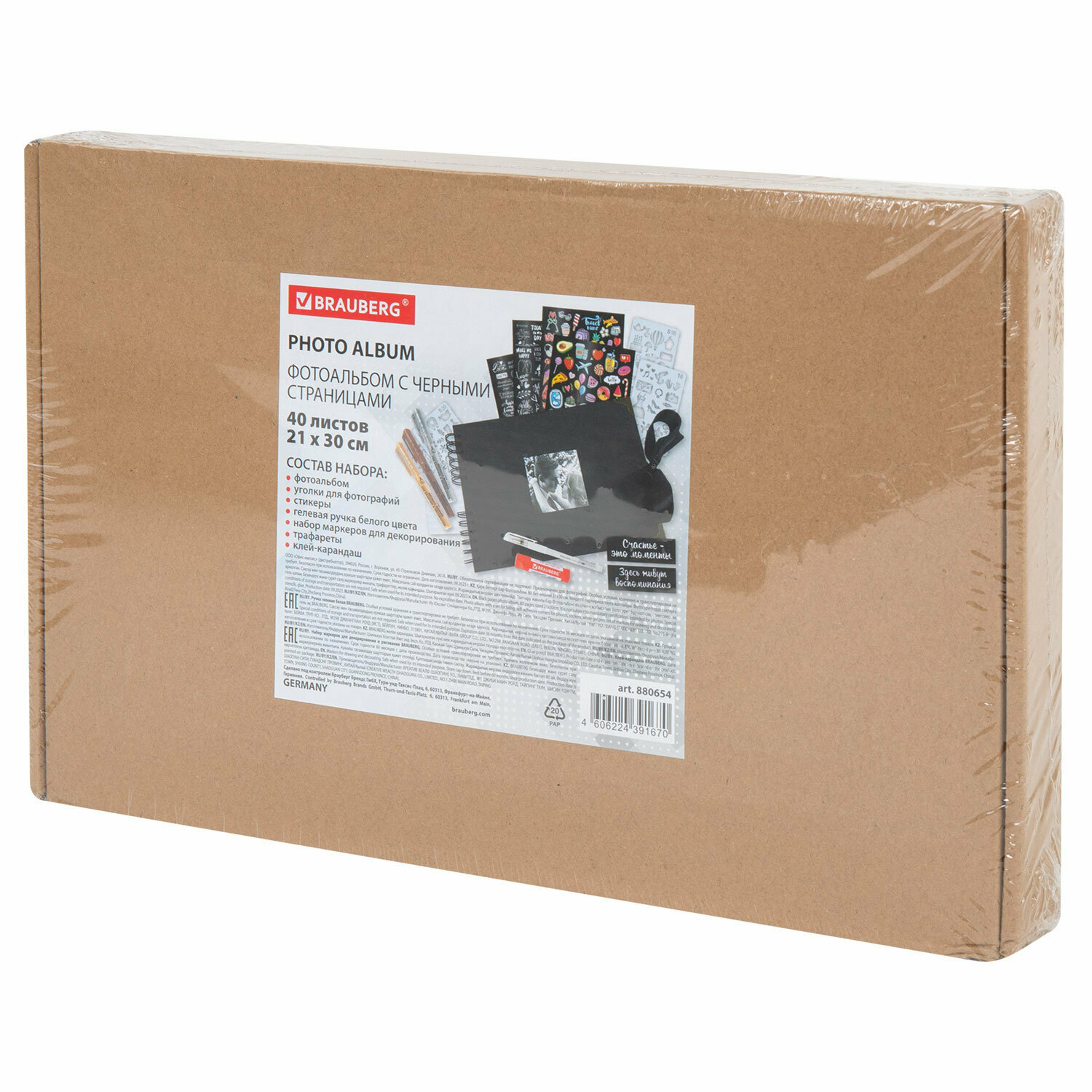 Фотоальбом Brauberg 21х30 см, 40 черных листов, уголки/стикеры/ручка/клей/трафареты/маркеры, BRG Black, 880654