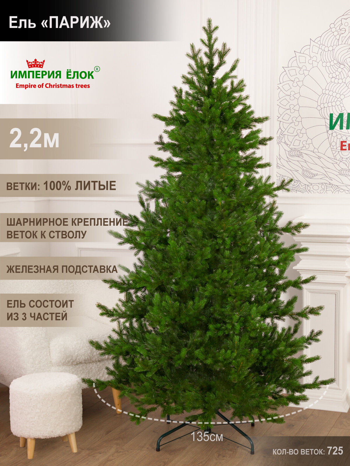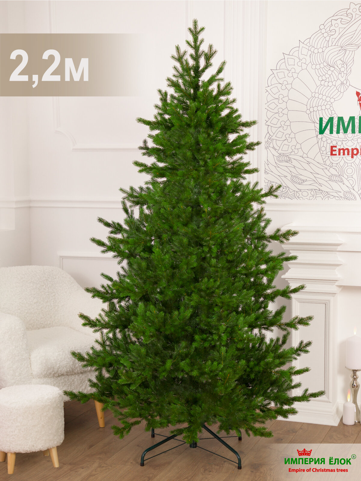 Елка искусственная новогодняя литая высокая 220 см, ель на Рождество в комнату, Империя Ёлок интересное: