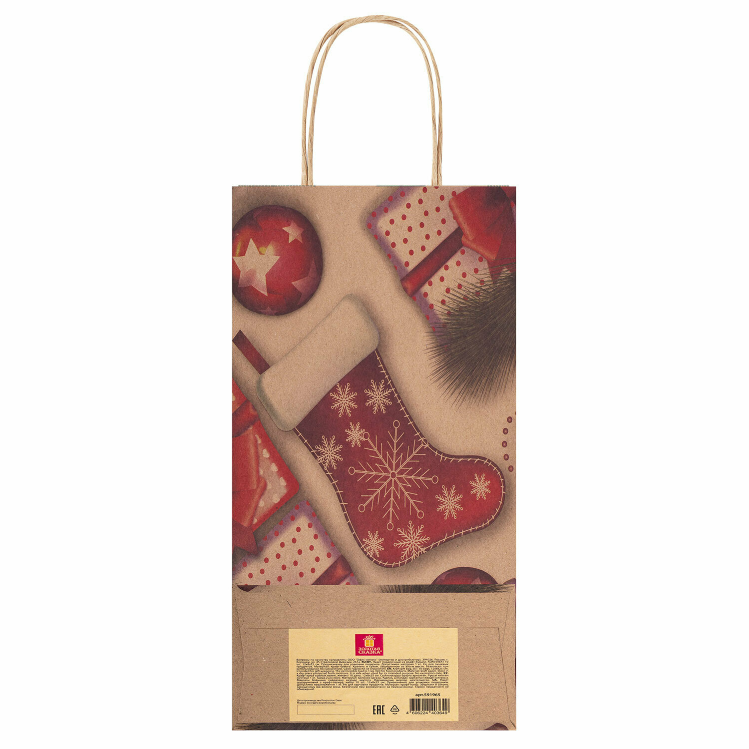 Купить Пакет подарочный новогодний набор 10 штук 26x13x32 см, Christmas Kraft, Золотая Сказка, 591961