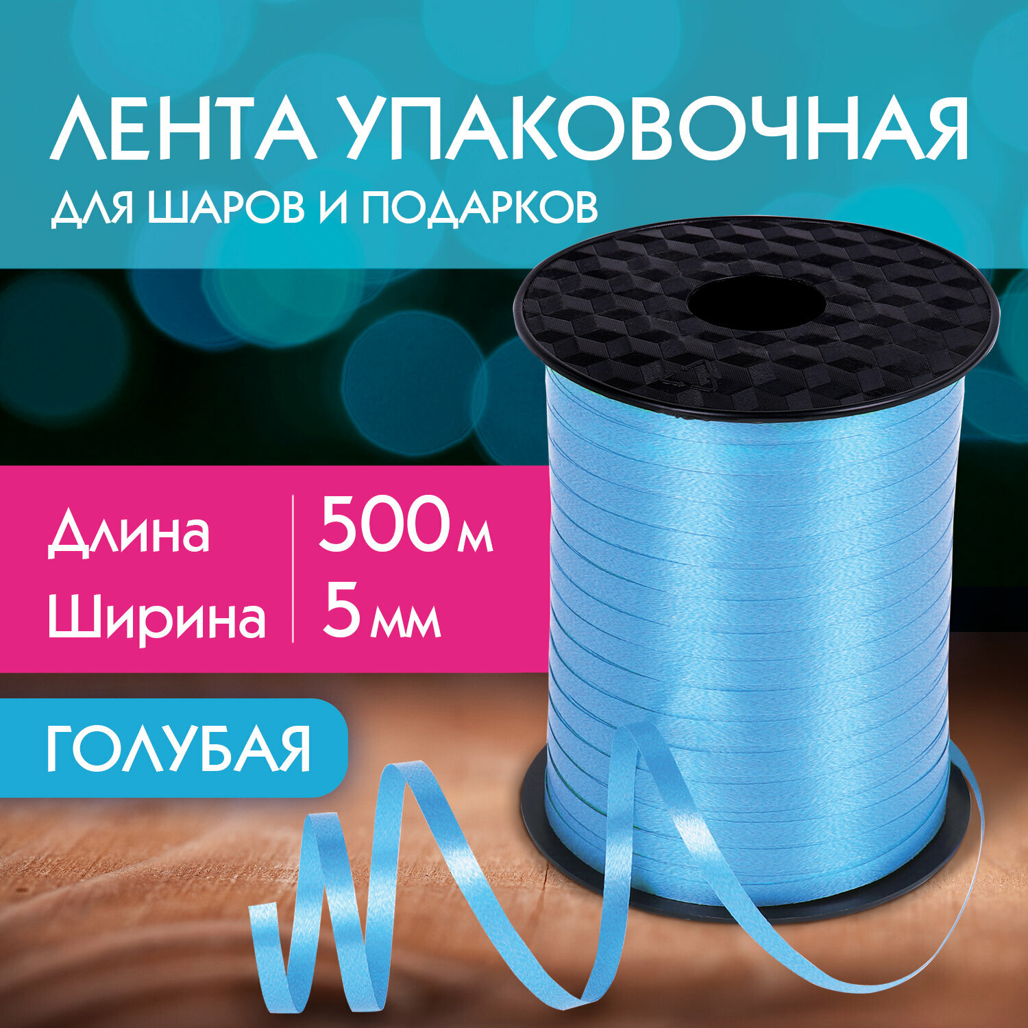 СохранитьЛента упаковочная декоративная для шаров и подарков, 5 мм х 500 м, голубая, золотая сказка, 591813 интересное: