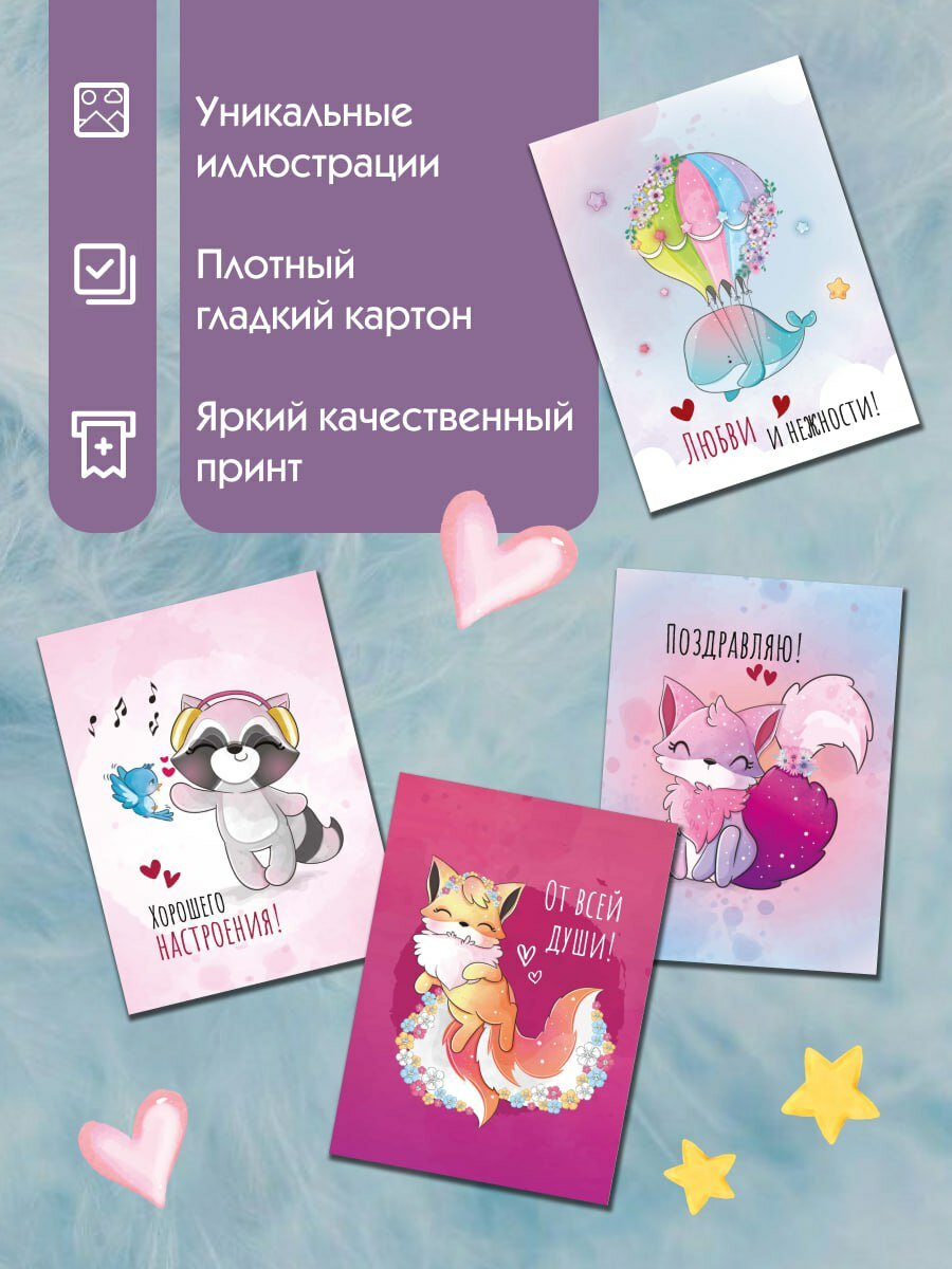 Мини открытки с пожеланиями набор с днём рождения девушке 30 штук 10х7 см