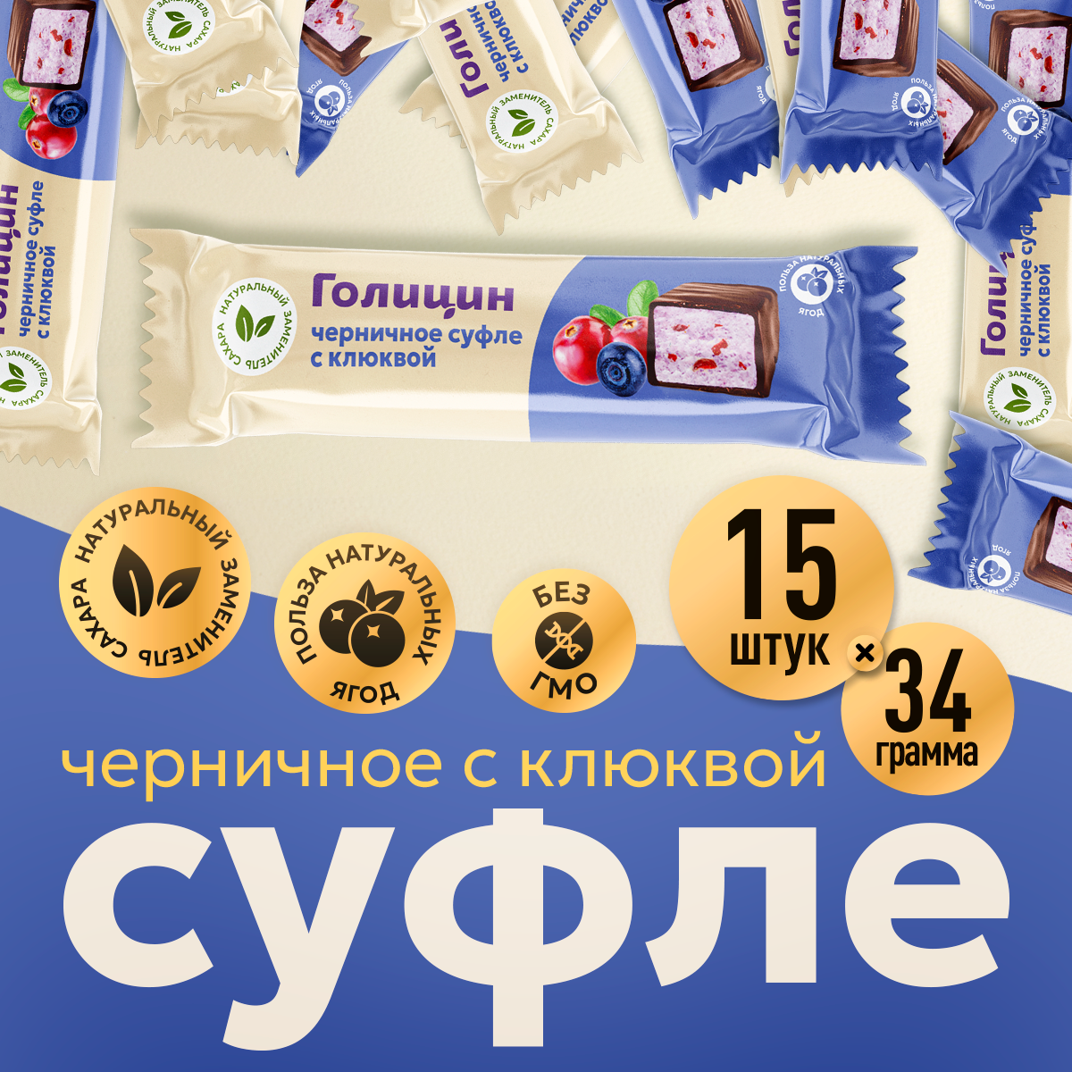 Купить Черничное суфле с клюквой Голицин конфеты без добавления сахара в глазури на фруктозе батончики 15 шт. по 34 г полезные сладости