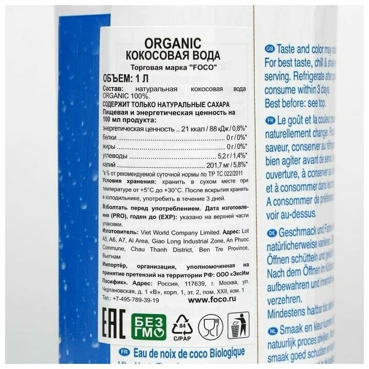 Ниже Вы можете прочитать отзывы на Кокосовая вода FOCO ORGANIC 1 л х 12 шт, ознакомится с подробными характеристиками, посмотреть интересные обзоры и фотографии на Кокосовая вода FOCO ORGANIC 1 л х 12 шт.