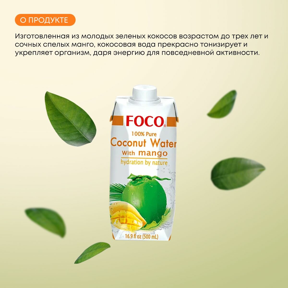 Кокосовая вода с манго "FOCO" Tetra Pak, 12 шт по 330 мл