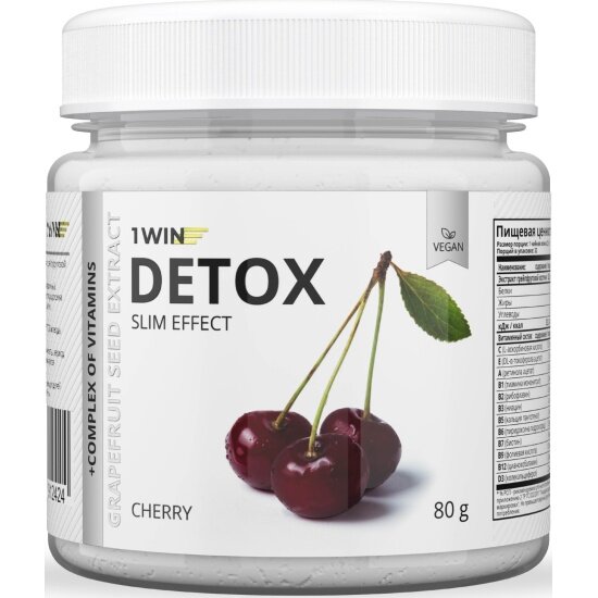 1WIN Фитококтейль детокс Detox Slim Effect дренажный напиток с экстрактом грейпфрутовой косточки, вишня,32 порции