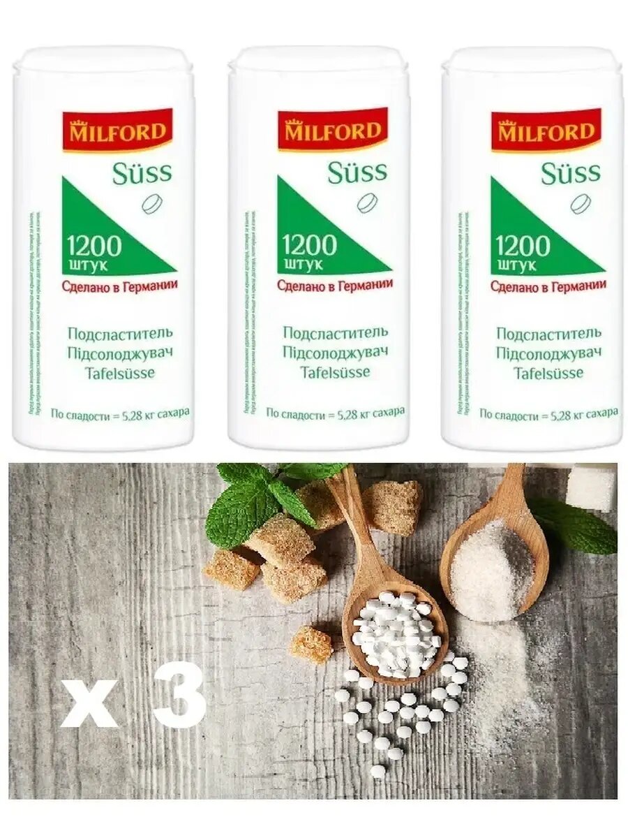 Заменитель сахара MILFORD 1200 таблеток, 90 г 3 дозатора интересное:
