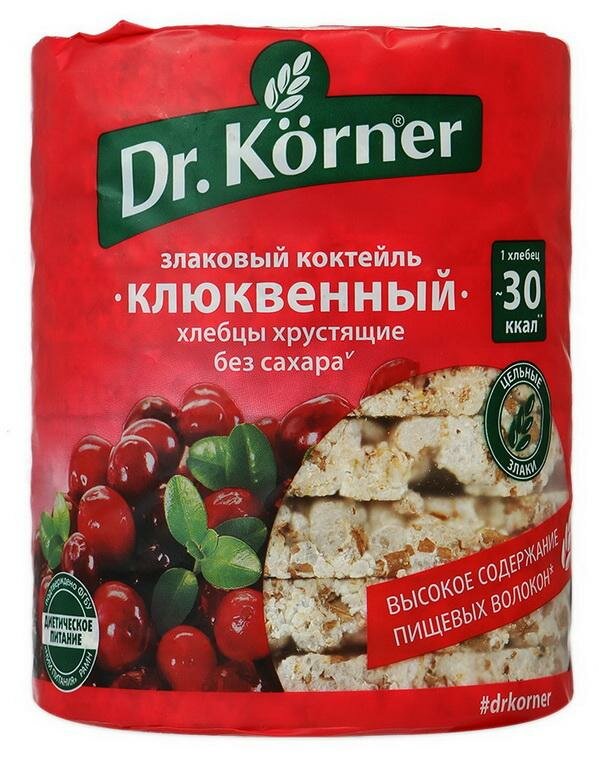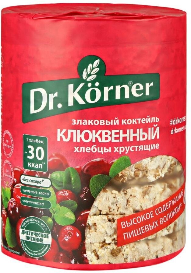 Хлебцы DR.KORNER "Клюквенные" злаковый коктейль, хрустящие, 100 г, пакет, 601090010 интересное: