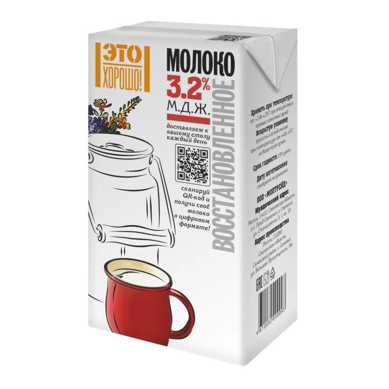 Купить "Ультрапастеризованное молоко "Это хорошо!" 3,2%"