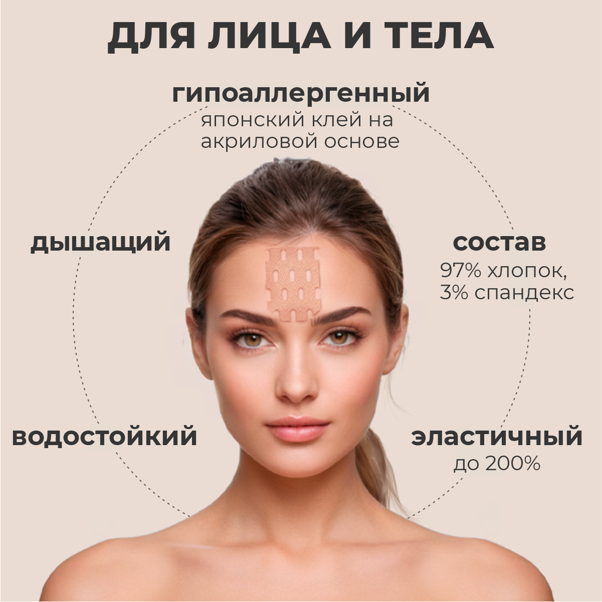 Тейп. Кинезио тейп спортивный, от растяжений, от морщин, перфорированный. Тейпы для лица, снятия отеков и шеи, лента для тела,5см Х 5 м, RIGHT ROUTE