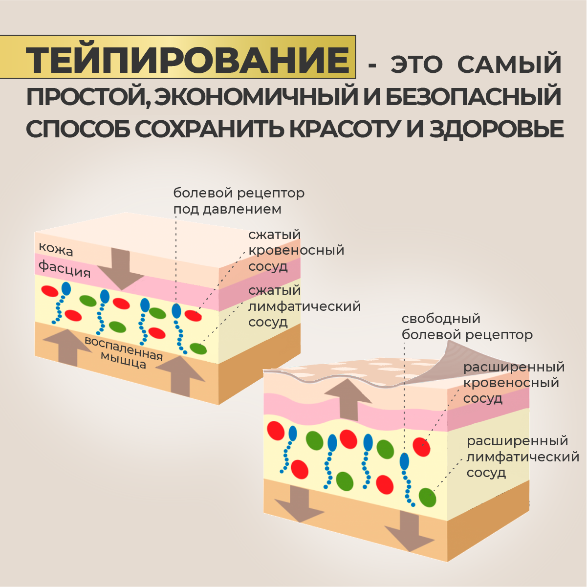 Тейпы для тела RIGHT ROUTE, комплект кинезио тейпов для тела перфорированных, лимфодренажных от морщин и отеков высокой фиксации 5смх5м бежевый, набор 3 шт