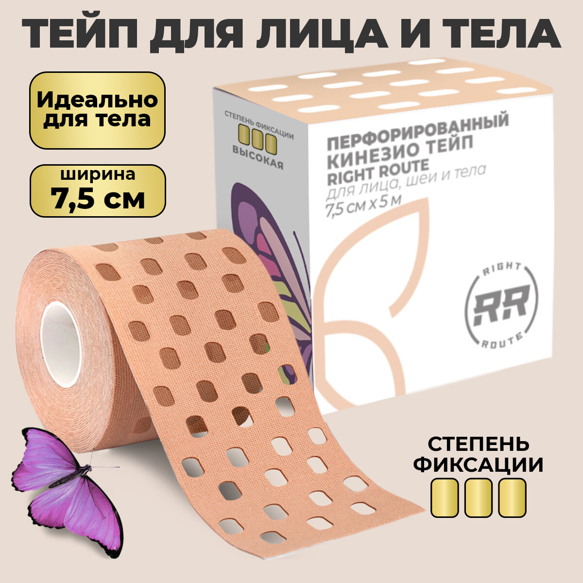 Купить Кинезио тейп перфорированный для лица и тела Right Route, 7,5 см