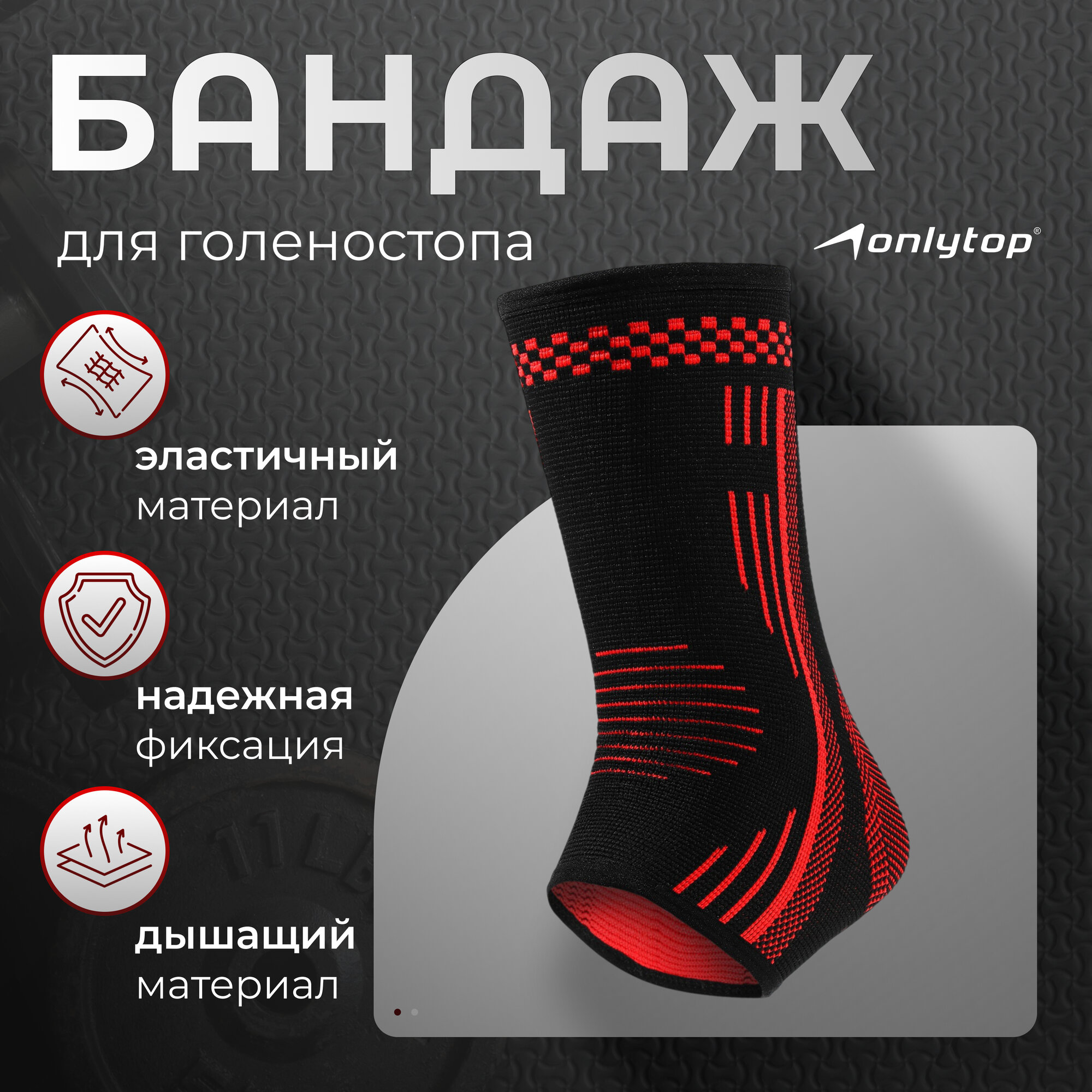 Суппорт голеностопа ONLYTOP, размер универсальный, 1 штука, цвет чёрно-красный
