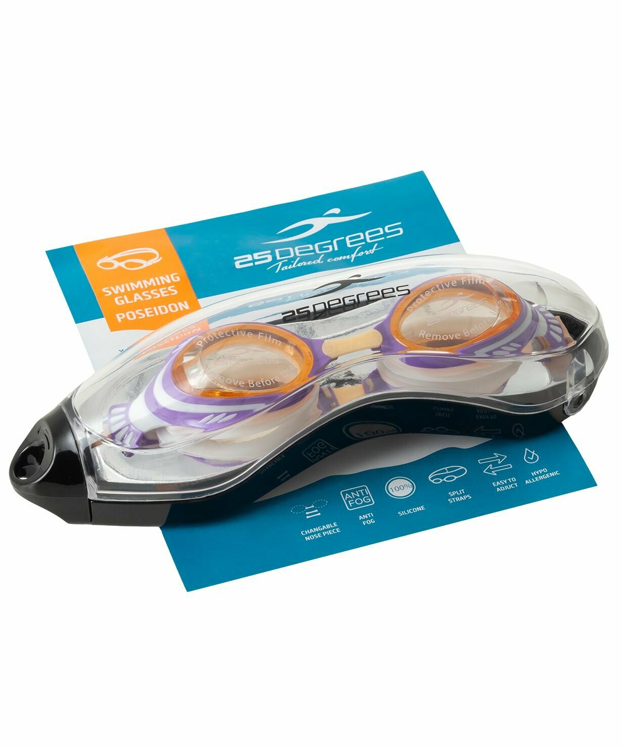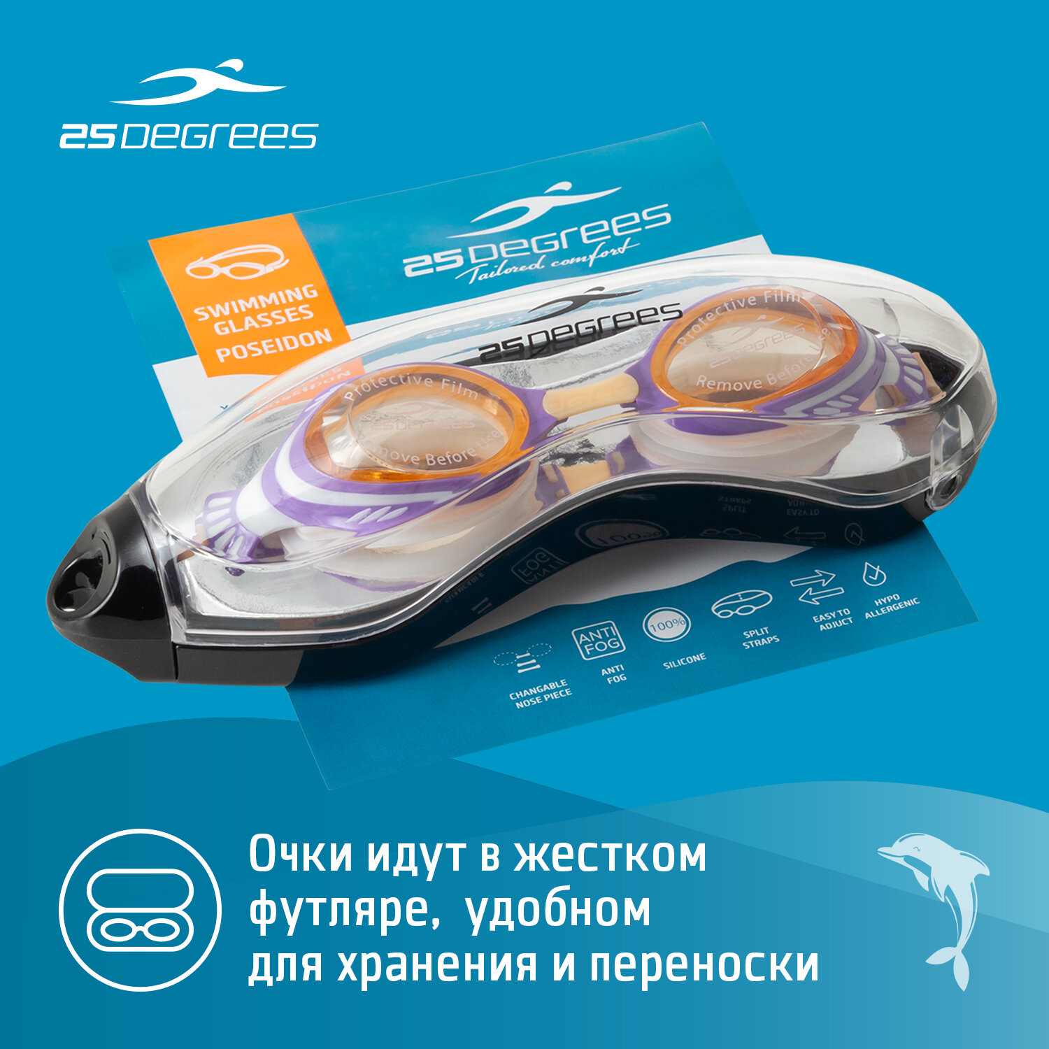 Очки для плавания детские 25DEGREES Poseidon Violet/Mosturd футляр в комплекте, цвет фиолетовый/горчичный