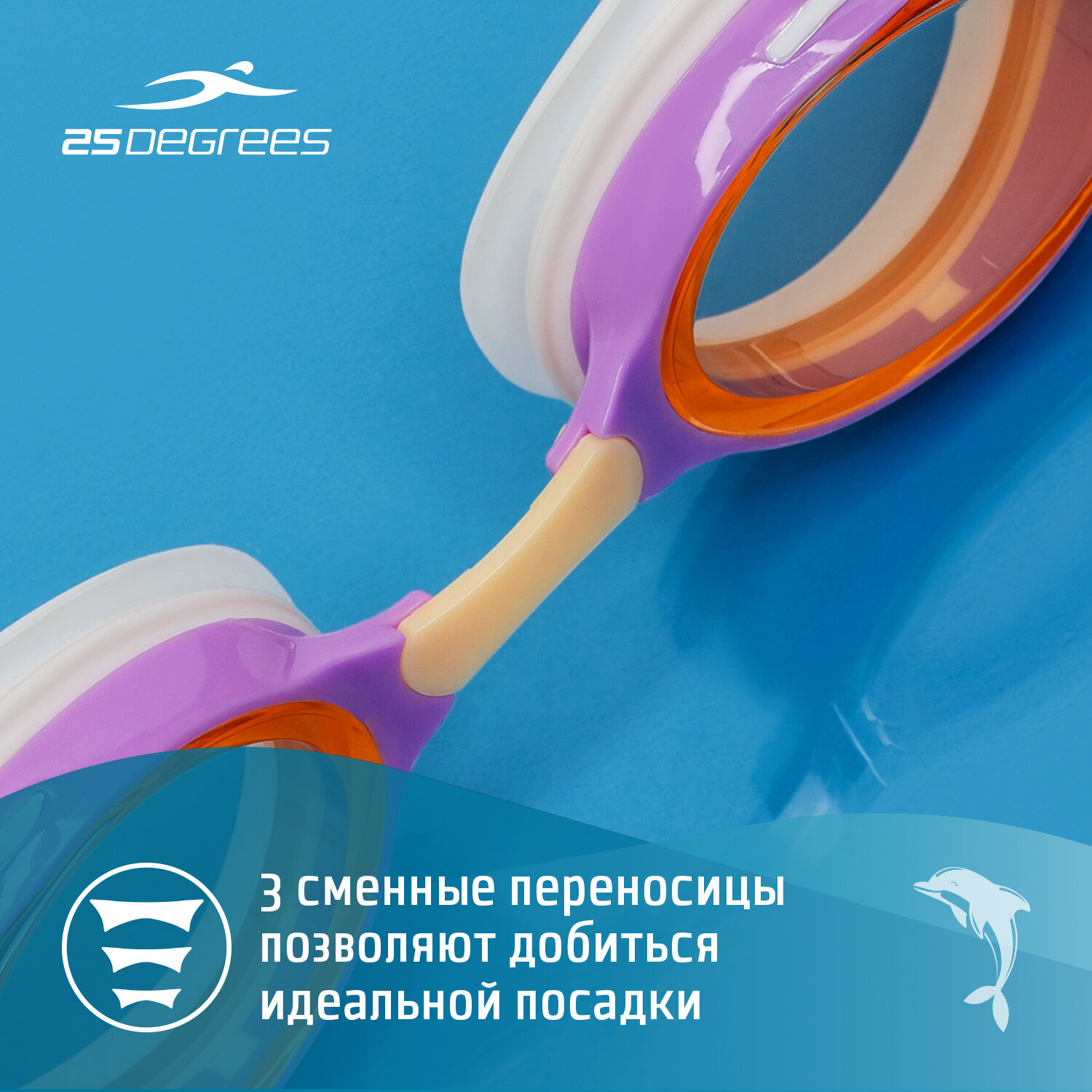 СохранитьОчки для плавания 25degrees Poseidon Lilac/peach, детский интересное:
