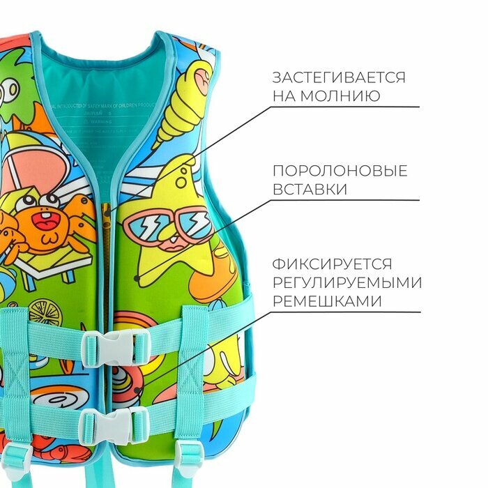 Купить Жилет ONLYTOP, для плавания, размер S, 12 - 15 лет, 40-50 кг, цвет зеленый