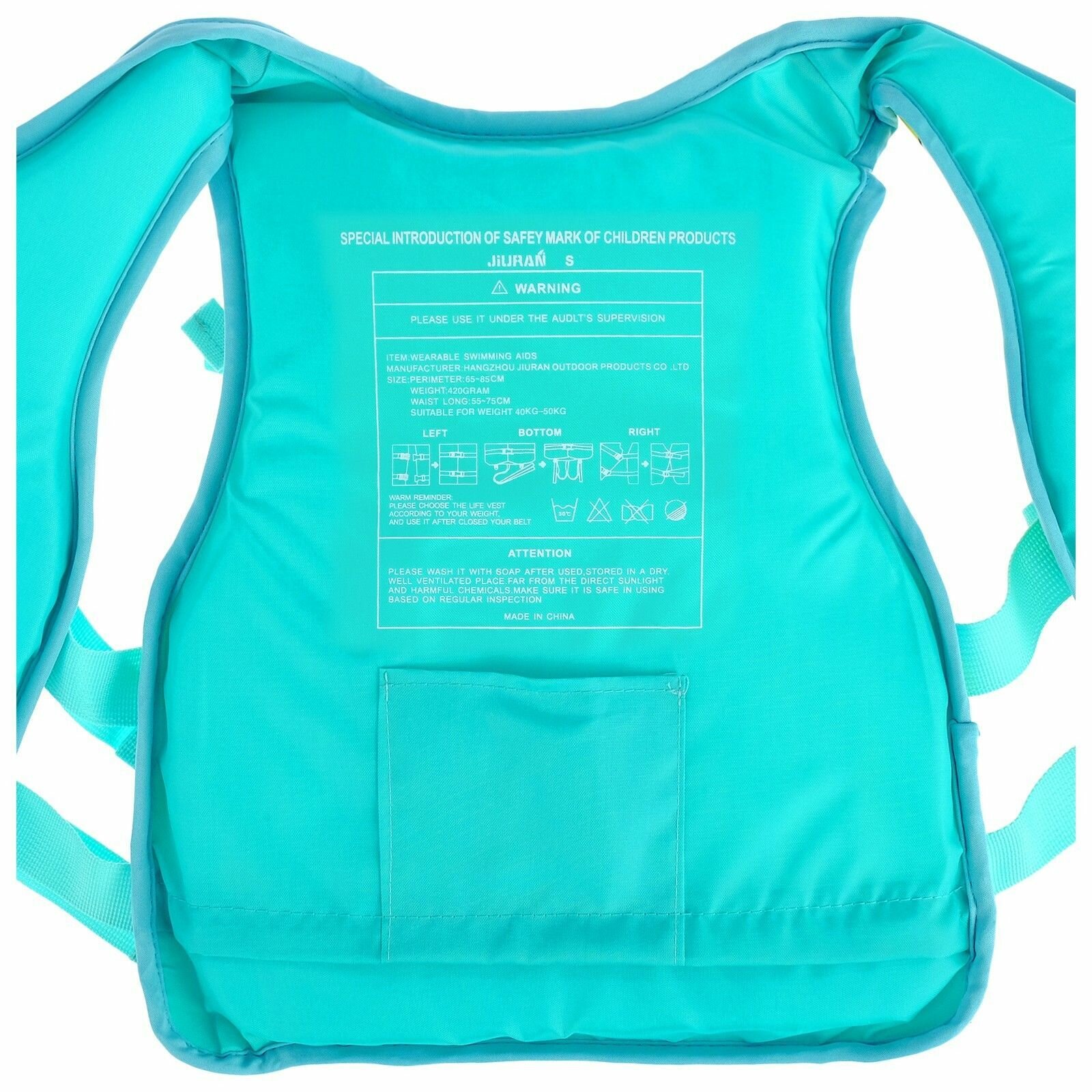 Жилет для плавания ONLYTOP S, 12-15 лет, 40-50 кг, бирюзовый