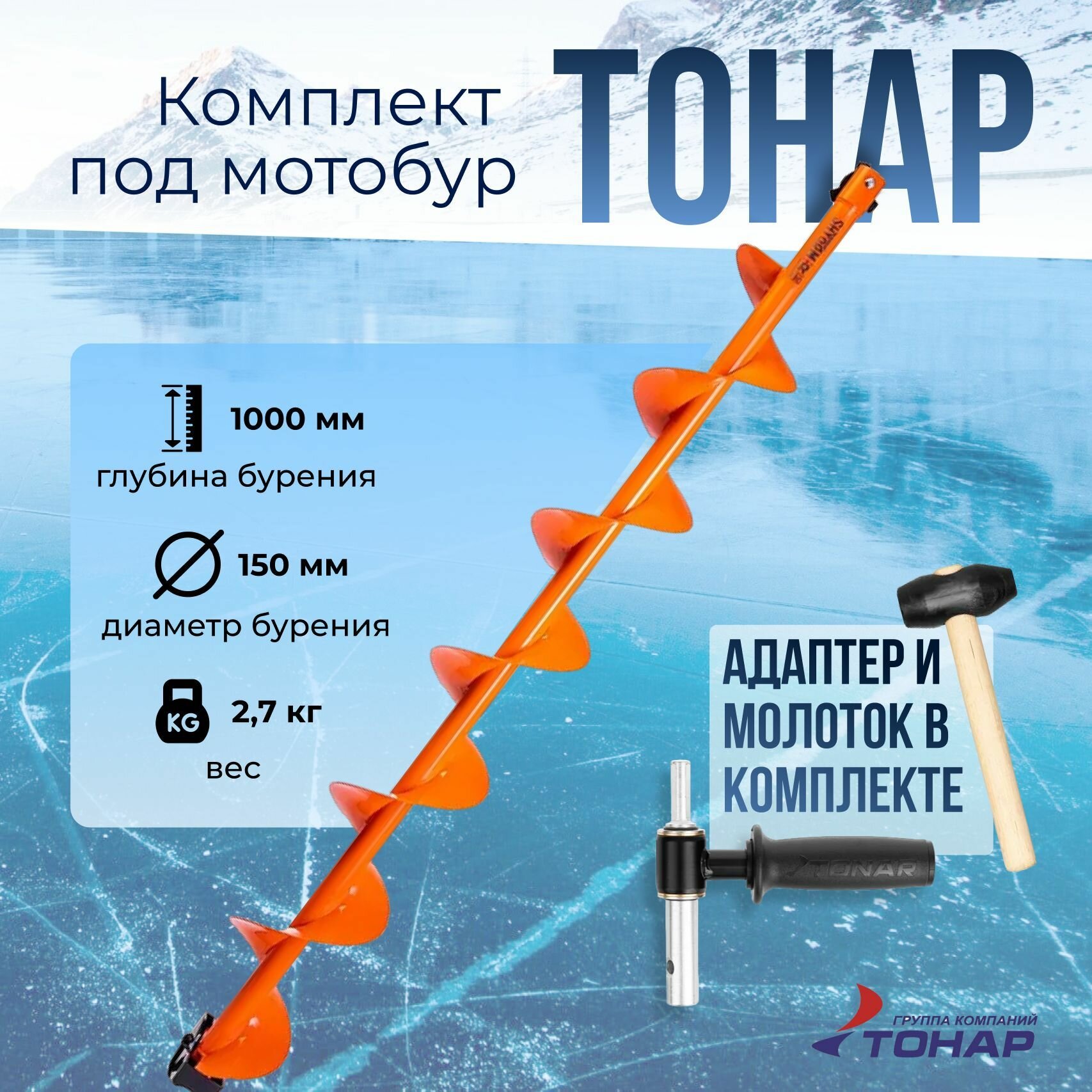 Комплект под мотобур шнек MOTOSHTORM 150R+адаптер АШ-02+молоточек Тонар