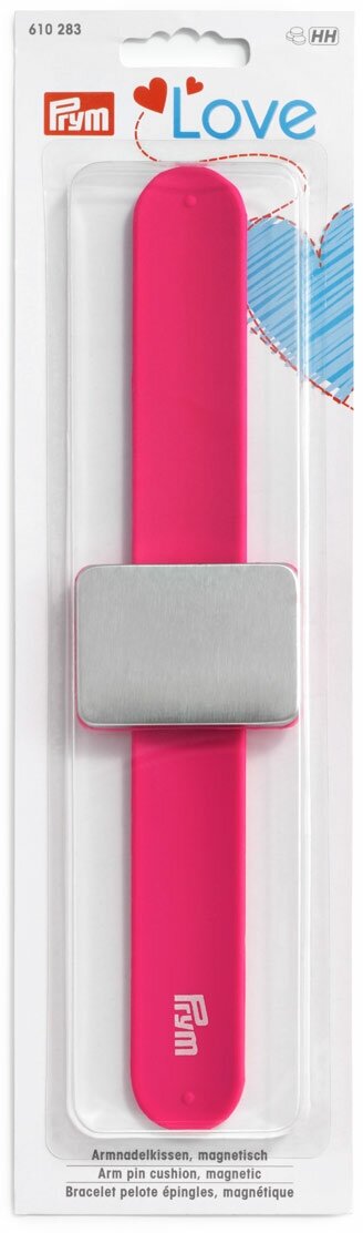 610283 PRYM Prym Love - Иголница на руку, магнитная (браслет 240х29мм, магнит 40х55мм), силикон/сталь, ярко-розовый