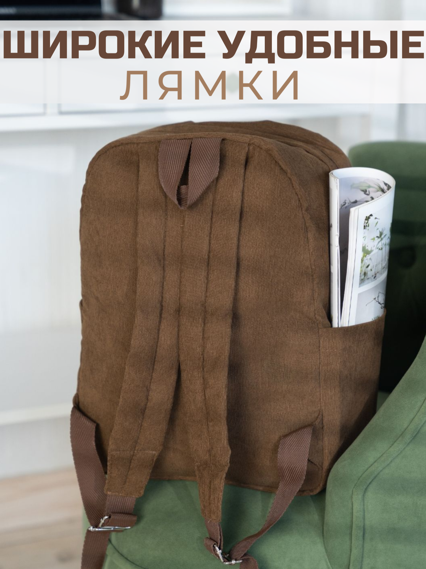 Рюкзак вельветовый, коричневый интересное: