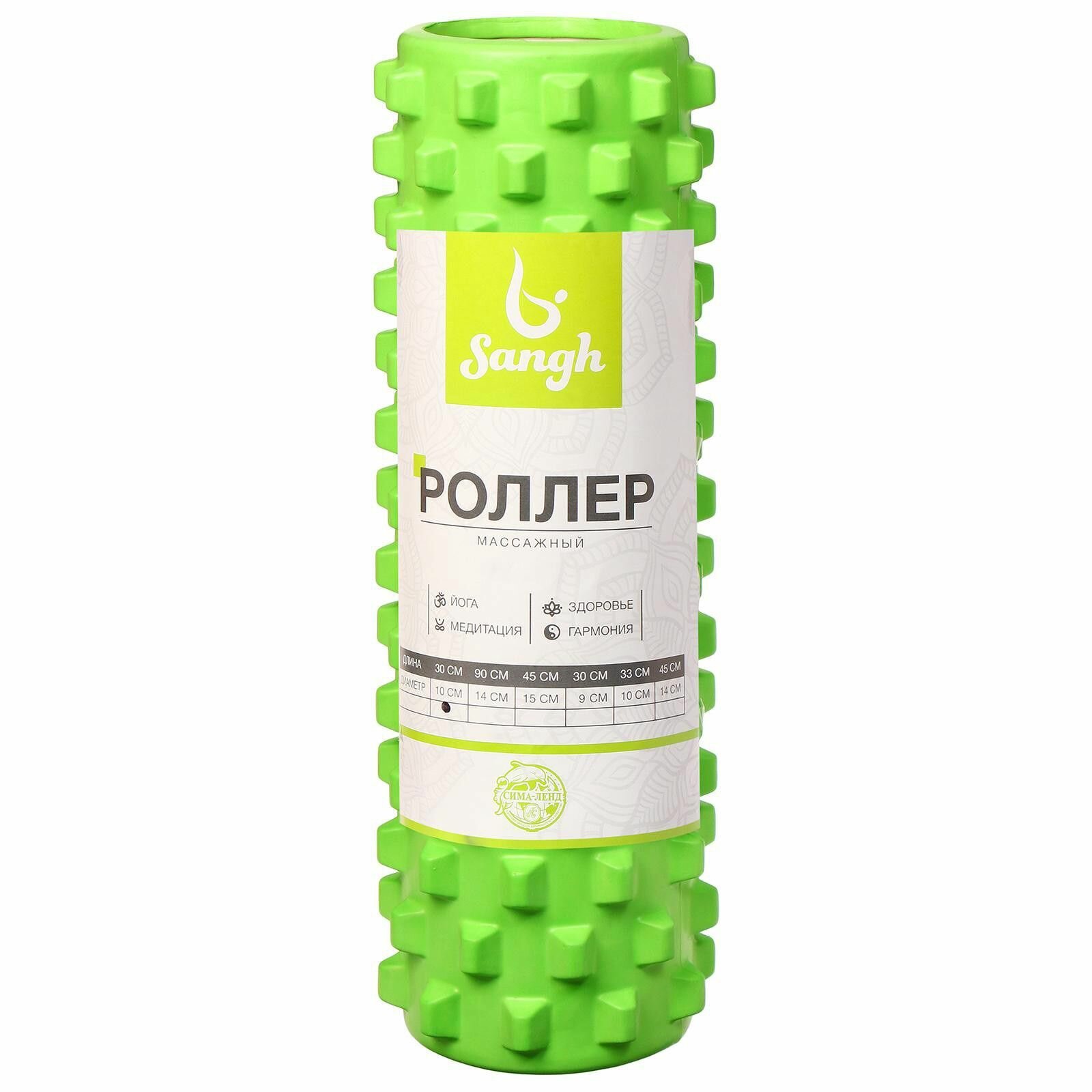 Ролик массажный Sangh, 45х15 см, цвет зелёный