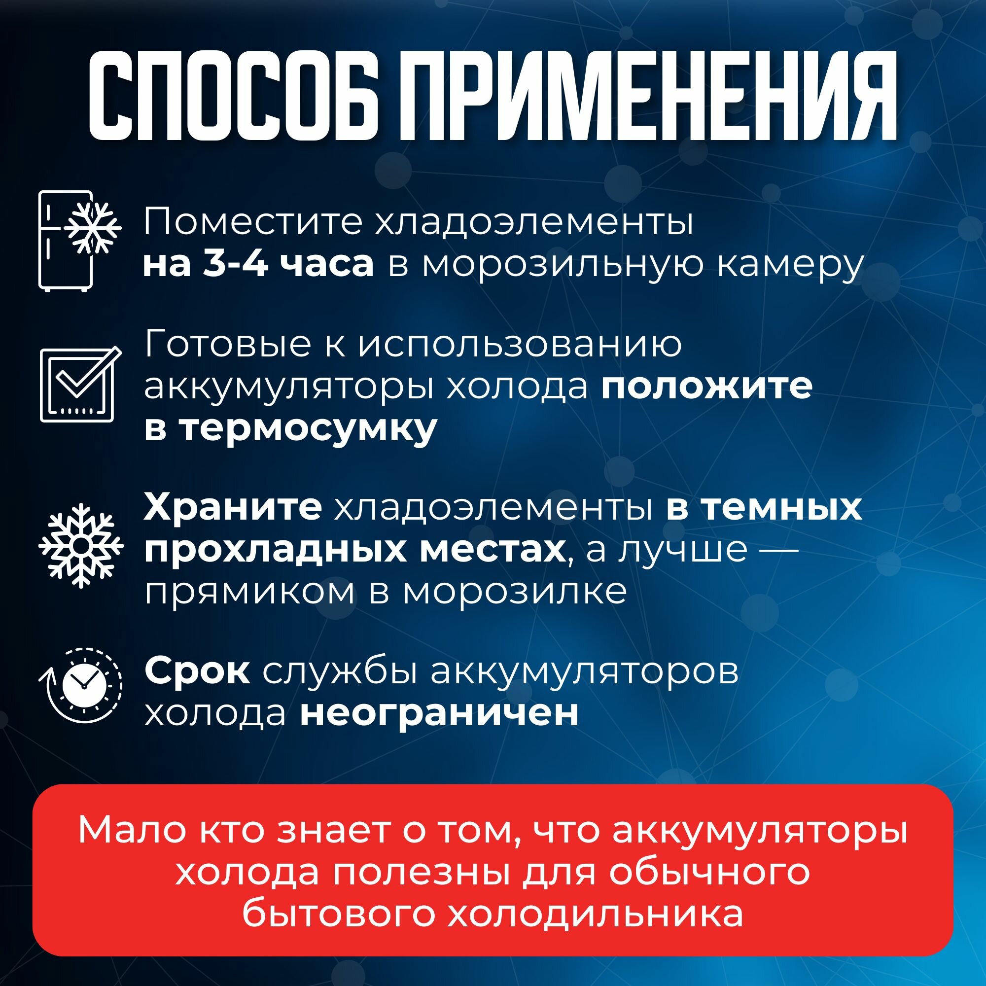 | Дополнительная информация | Можно использовать как согревающий элемент. Положите аккумулятор холода в СВЧ на 30 секунд. |