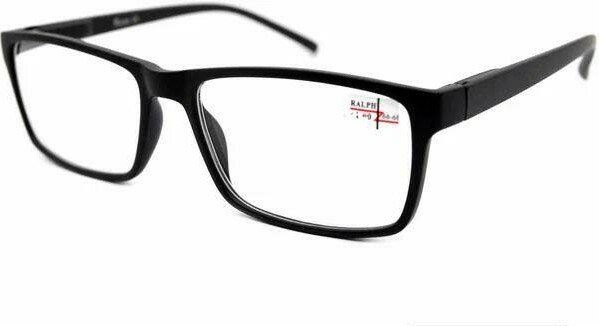 Очки для чтения РЦ 62-64 корригирующие RALPH +1.25, пластиковые линзы, бесцветные, черные, футляр с салфеткой в подарок
