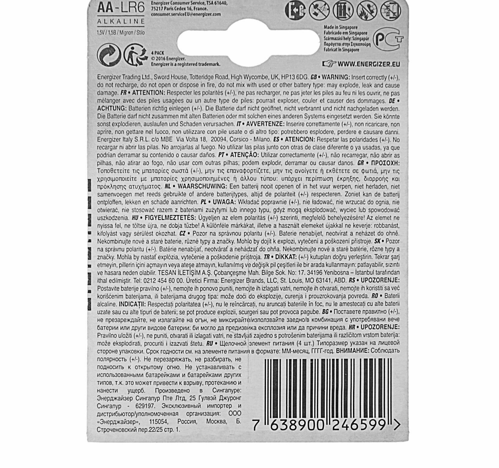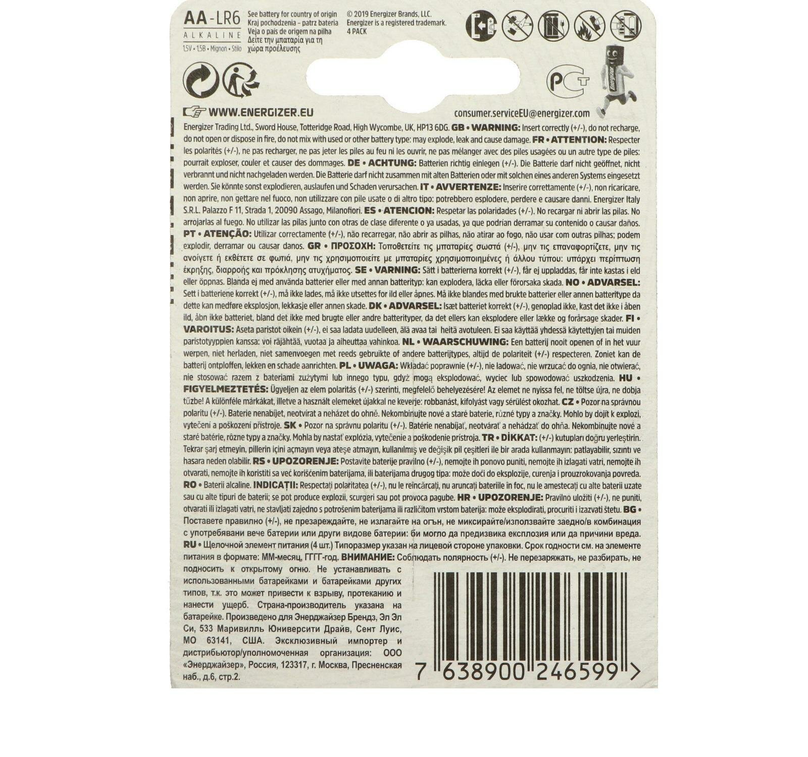 Батарейка Energizer LR6/AA Alkaline Power BL4 , 4шт. интересное: