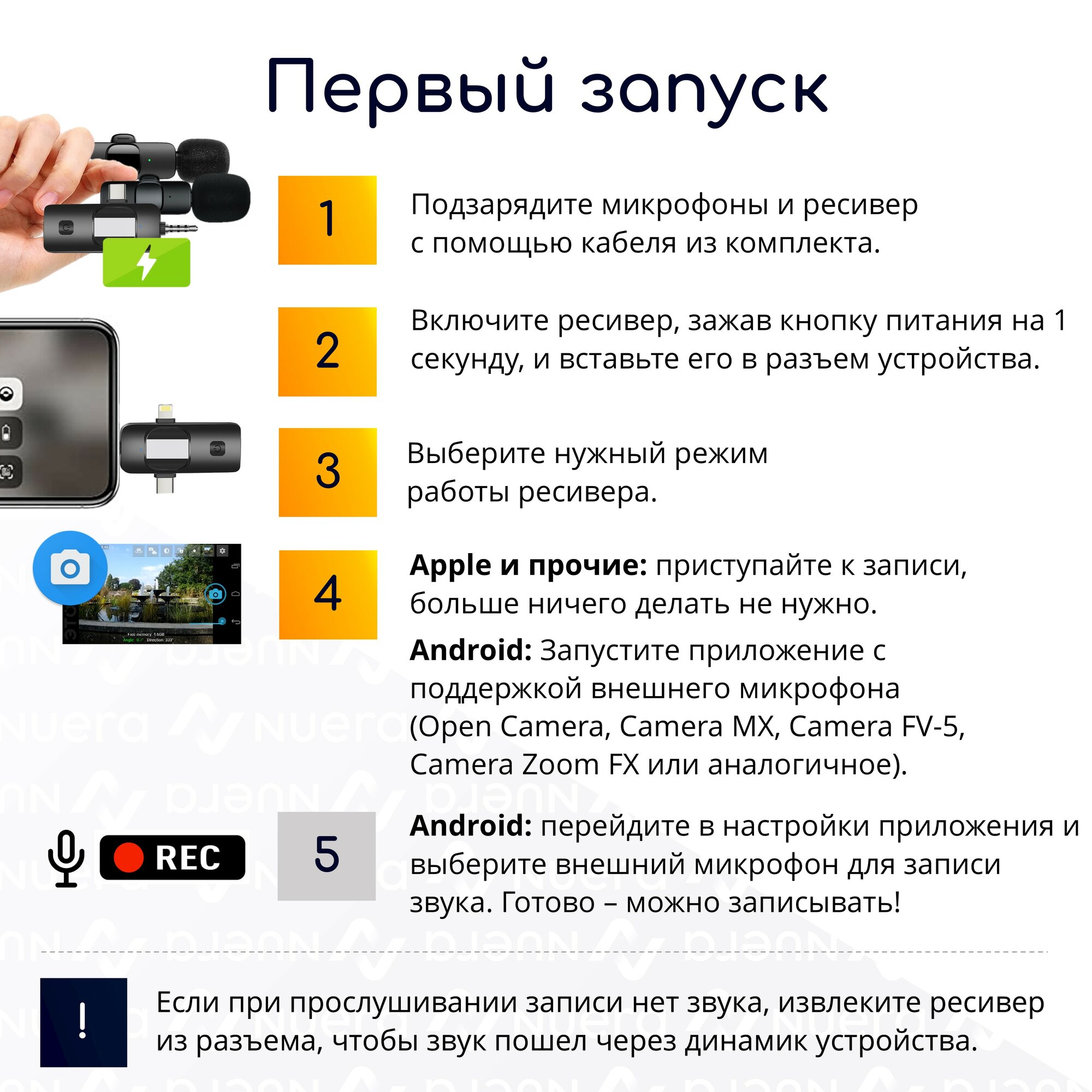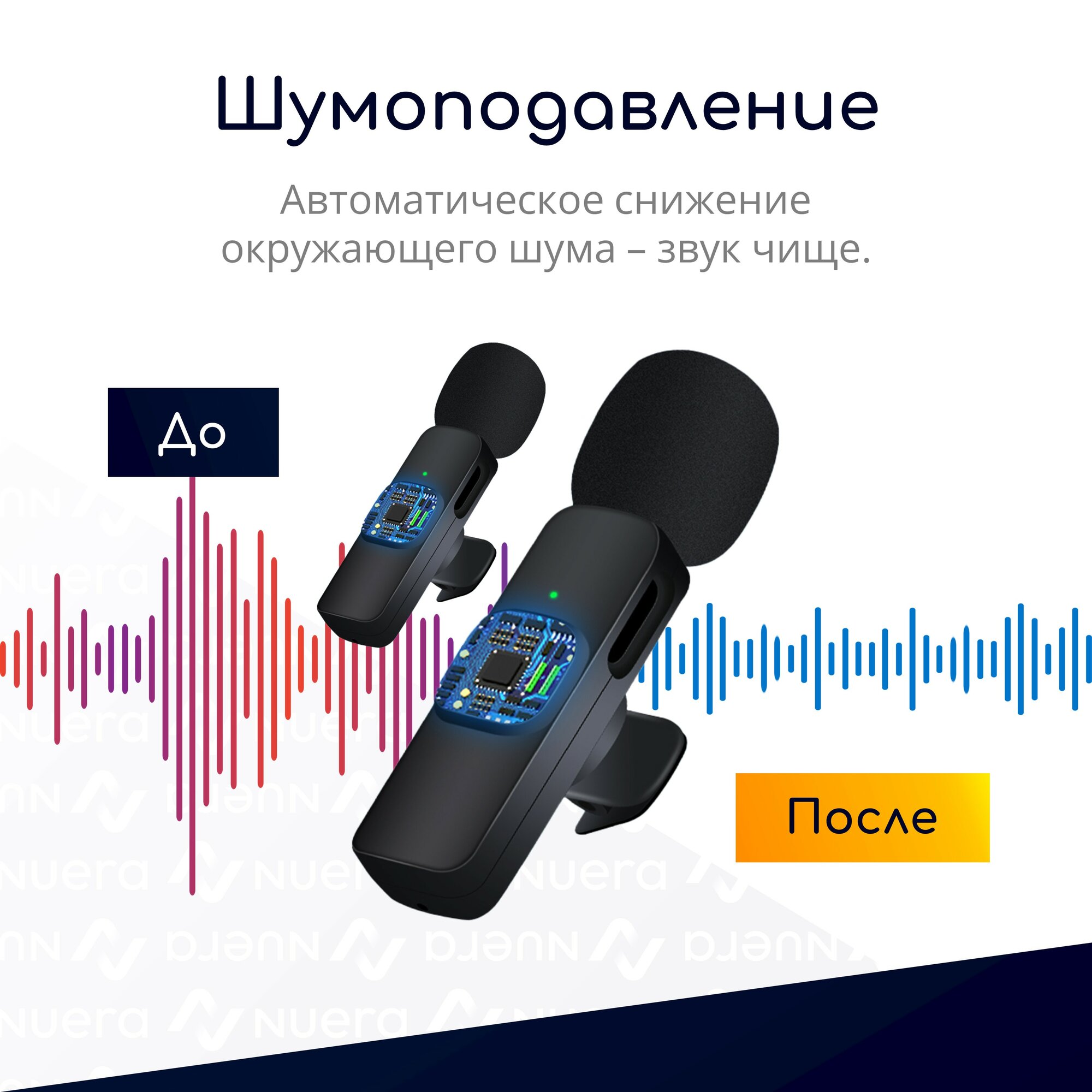 NOBUS K9C duo / 2 беспроводных петличных микрофона с шумоподавлением, Type-C / для iPhone 16, 15 и Android / комплект