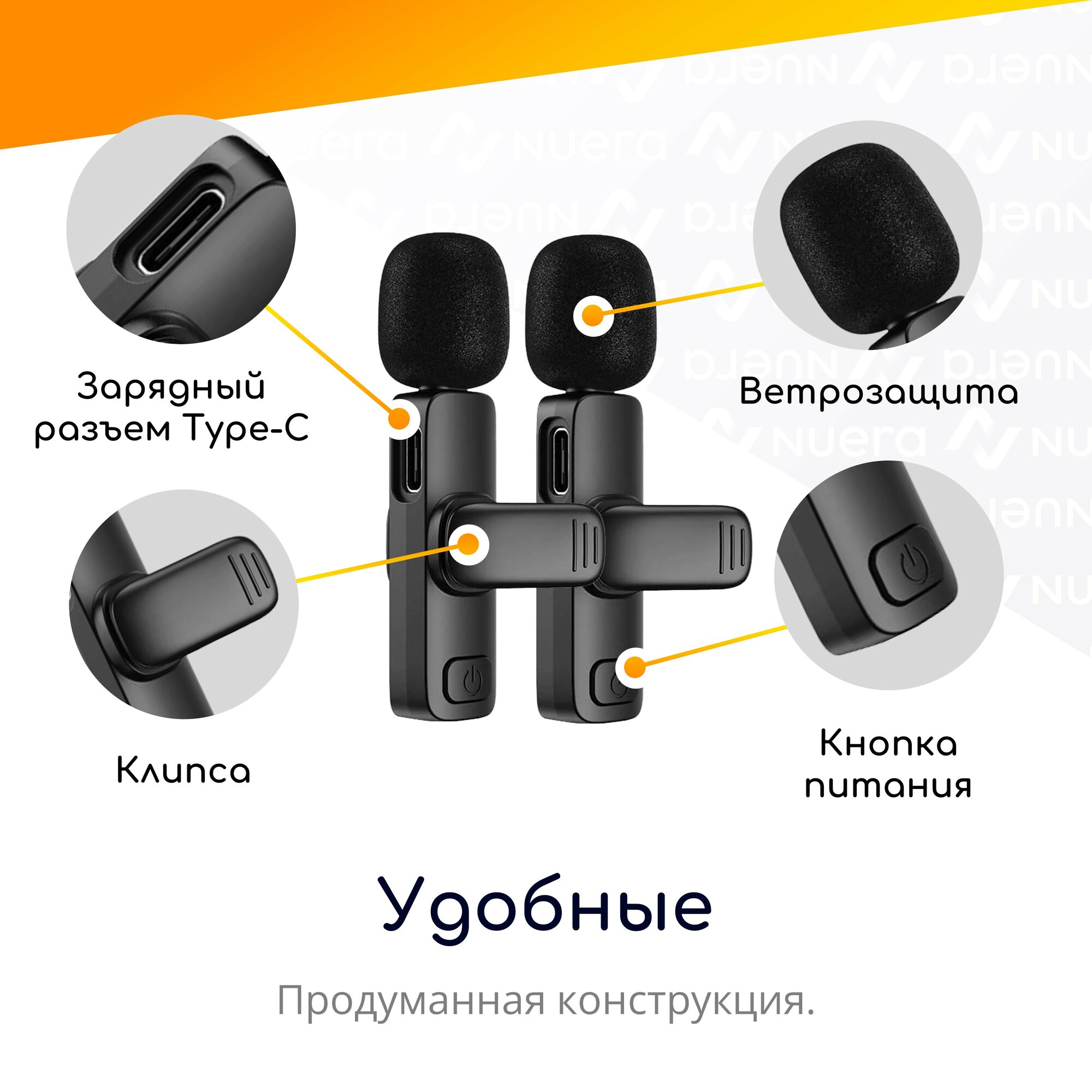NOBUS K8 / микрофон беспроводной петличный с шумоподавлением, Type-C (для iPhone 16, 15 и Android), черный