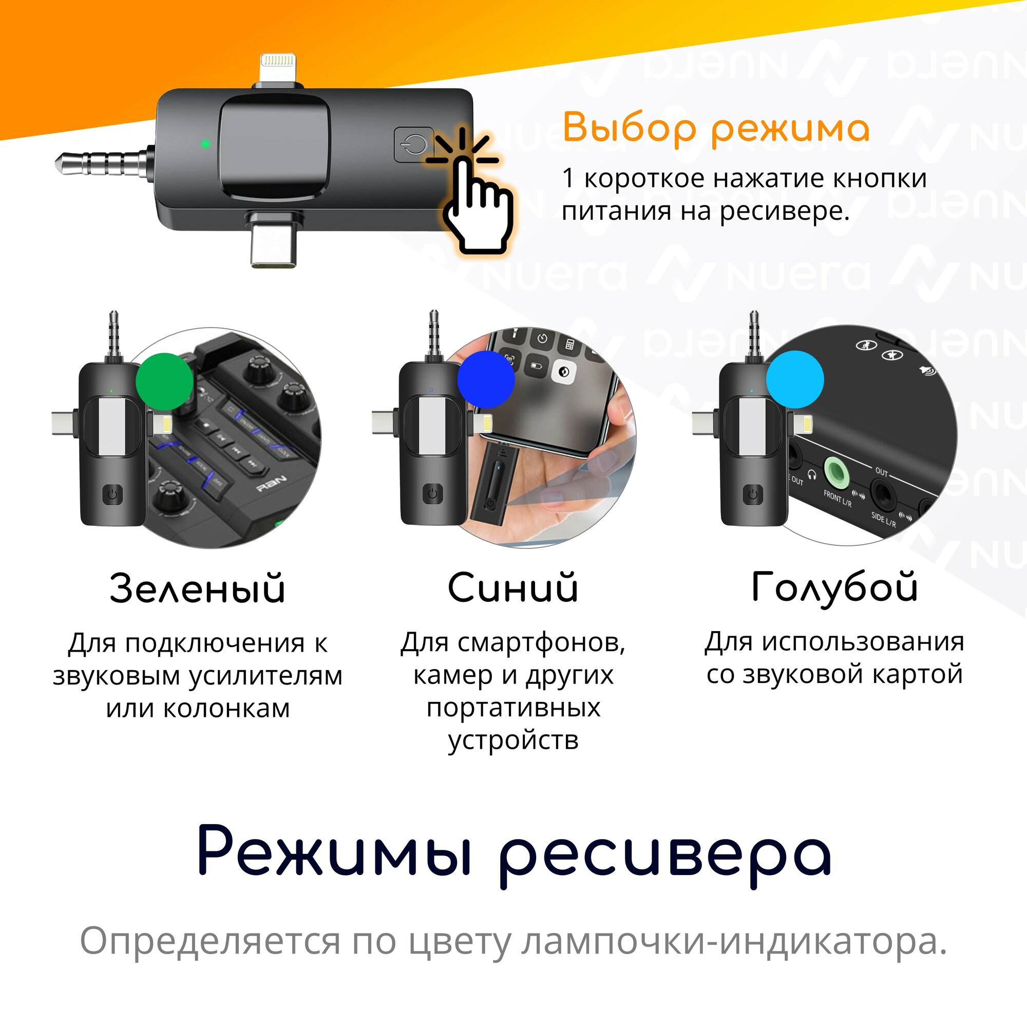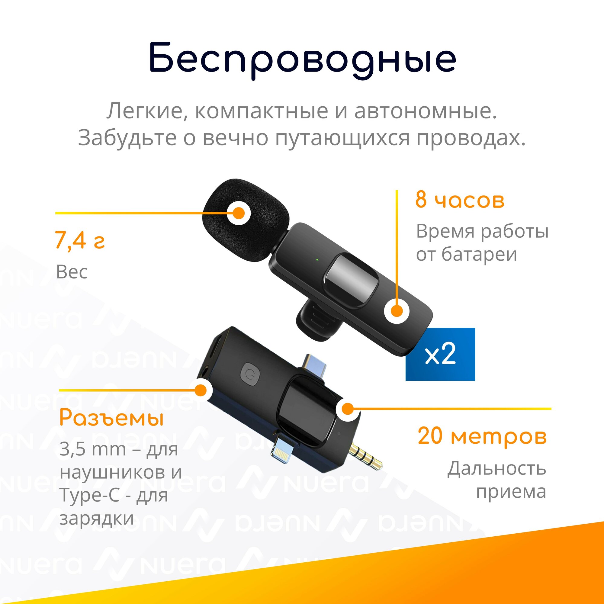 Купить NOBUS K15 duo / Универсальный беспроводной петличный микрофон (2 шт.) под 3 интерфейса (Type-C, Lightning и 3.5 mm)