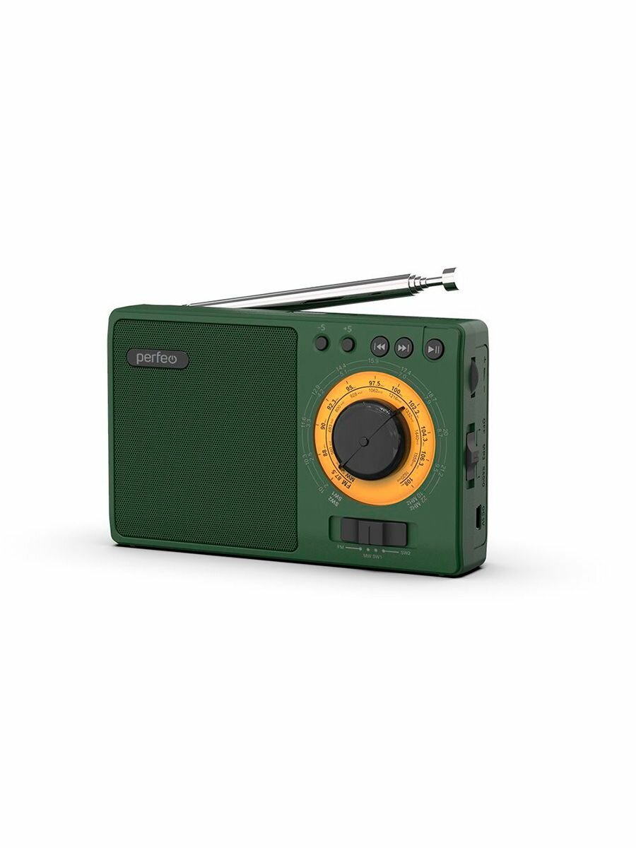 Купить Радиоприемник аналоговый, всеволновый Perfeo заря/ MP3/ питание 18650, зелёный.