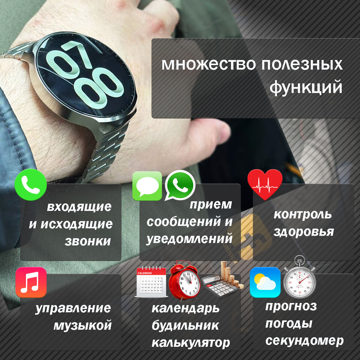 смарт часы, smart watch мужские, смарт часы круглые, 3 ремешка, серебристые интересное: