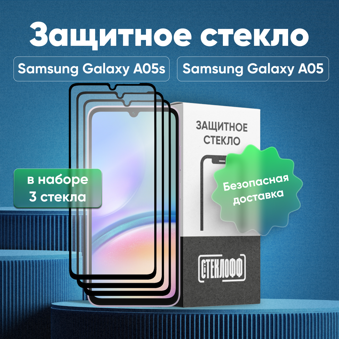 Купить Набор защитных стекол для Samsung Galaxy A05 / A05s c полным покрытием, серия Стеклофф Base, 3 шт