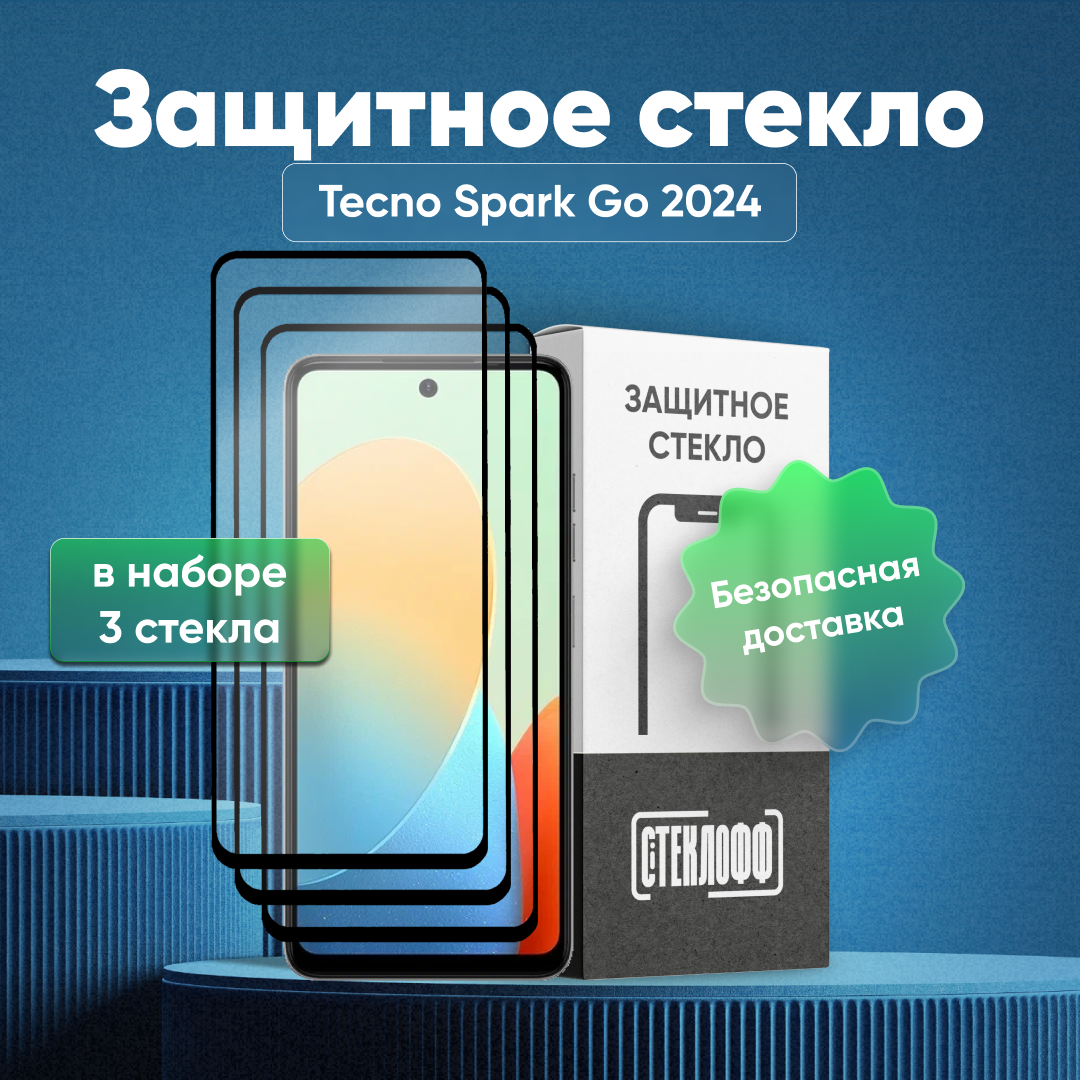 СохранитьНабор защитных стекол для Tecno Spark Go 2024 c полным покрытием, серия Стеклофф Base, 3 шт интересное: