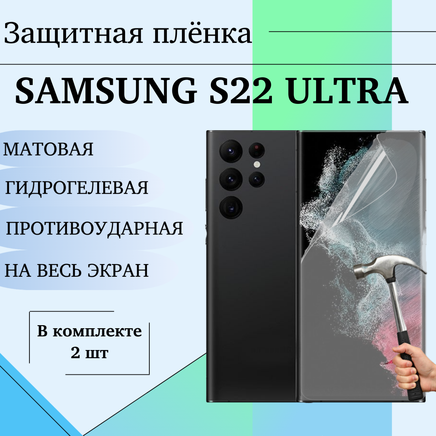 Купить Гидрогелевая пленка для Samsung S22 Ultra защитная матовая на весь экран 2 шт