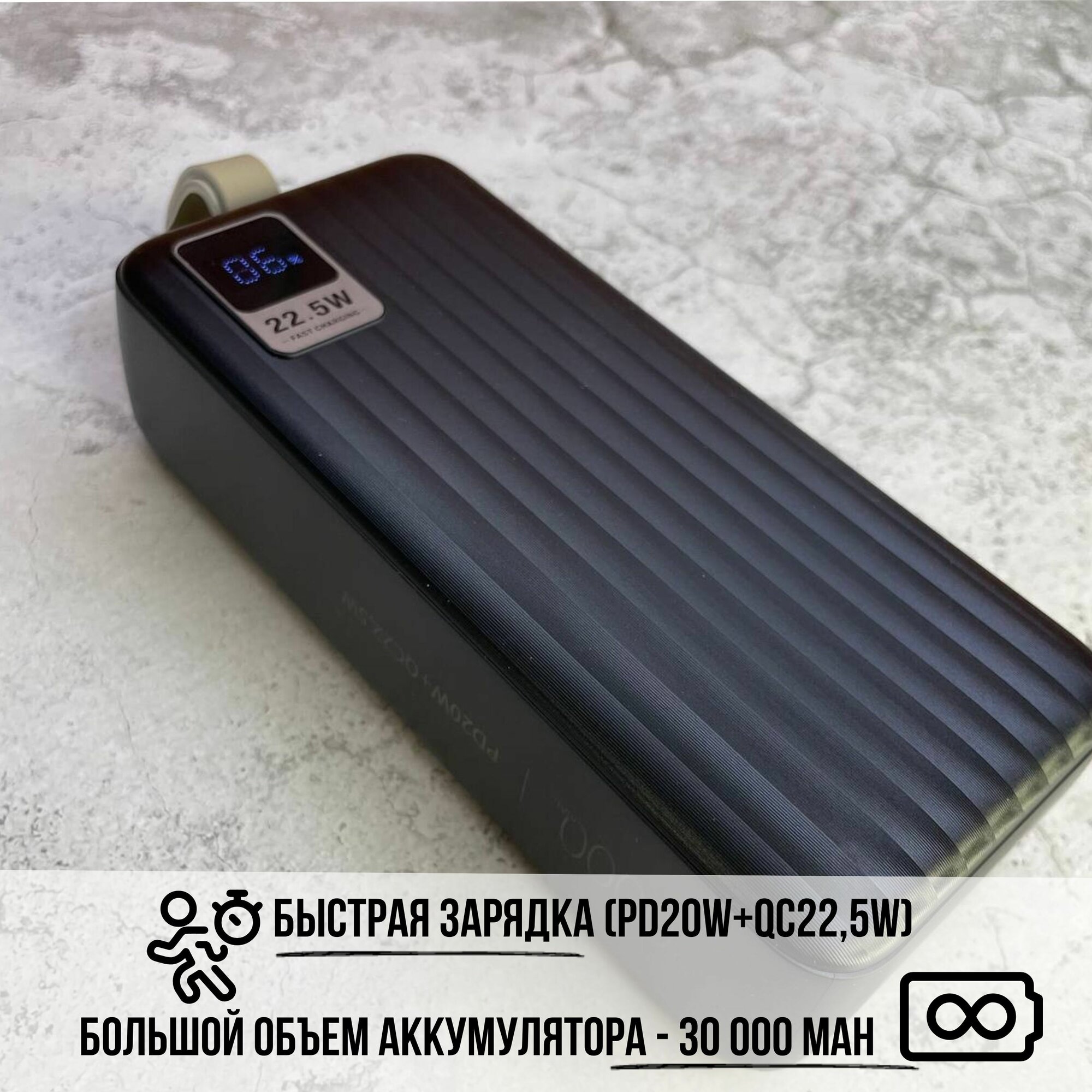 SENNBEYER power bank 30000 мАч, солнечная батарея, с кабелем и экраном.