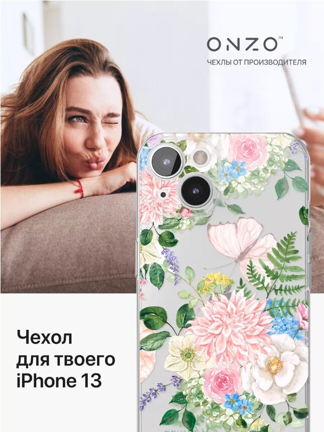 СохранитьЧехол на iPhone 13 / Айфон 13 прозрачный с рисунком "Butterfly" интересное: